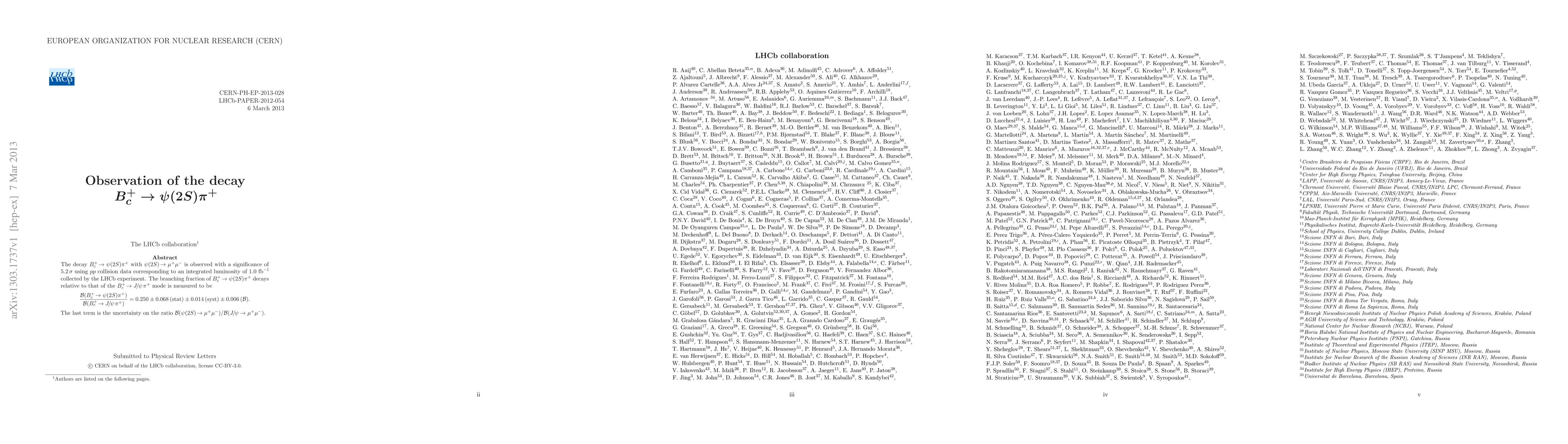 The LHCb experiment observes the decay $B_c^+ \to \psi(2S)\pi^+$ with a significance of $5.2\,\sigma$, and measures its relative branching fraction to $B_c^+ \to J/\psi\pi^+$ as $0.250 \pm 0.068 \,\text{stat} \pm 0.014 \,\text{\syst} \pm 0.006 \,(\mathcal{B})$.
