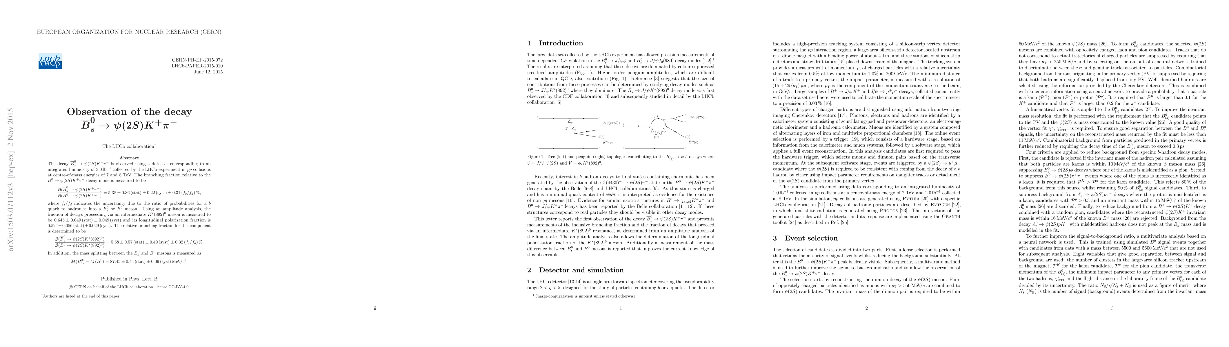 The LHCb experiment observes the decay $\overline{B}_s^0 \rightarrow \psi(2S) K^+ \pi^-$ with a relative branching fraction of $5.38 \pm 0.36$ (stat) $\pm 0.22$ (syst) $\pm 0.31$ (f_s/f_d) %. The mass splitting between $B_s^0$ and $B^0$ mesons is measured as $87.45 \pm 0.44$ (stat) $\pm 0.07$ (syst) MeV/c².