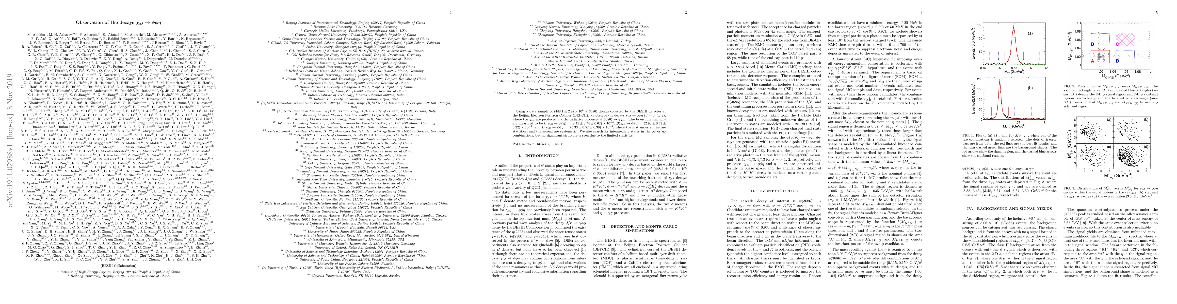 The BESIII detector observes the decays $\chi_{cJ} \to \phi\phi\eta$ for $J=0, 1, 2$ using $\psi(3686)$ decay data, measuring branching fractions of $(8.41\pm0.74\pm0.62)\times10^{-4}$, $(2.96\pm0.43\pm0.22)\times10^{-4}$, and $(5.33\pm0.52\pm0.39)\times10^{-4}$ respectively, but finds no significant intermediate states due to limited statistics.