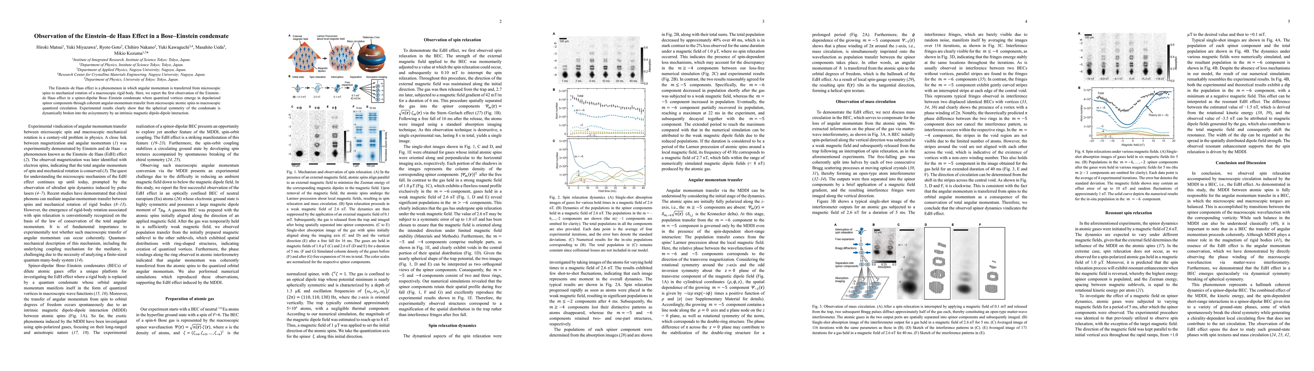 Researchers observed the Einstein-de Haas effect in a Bose-Einstein condensate, where microscopic spins transferred angular momentum to macroscopic quantized circulation, breaking the condensate's spherical symmetry.