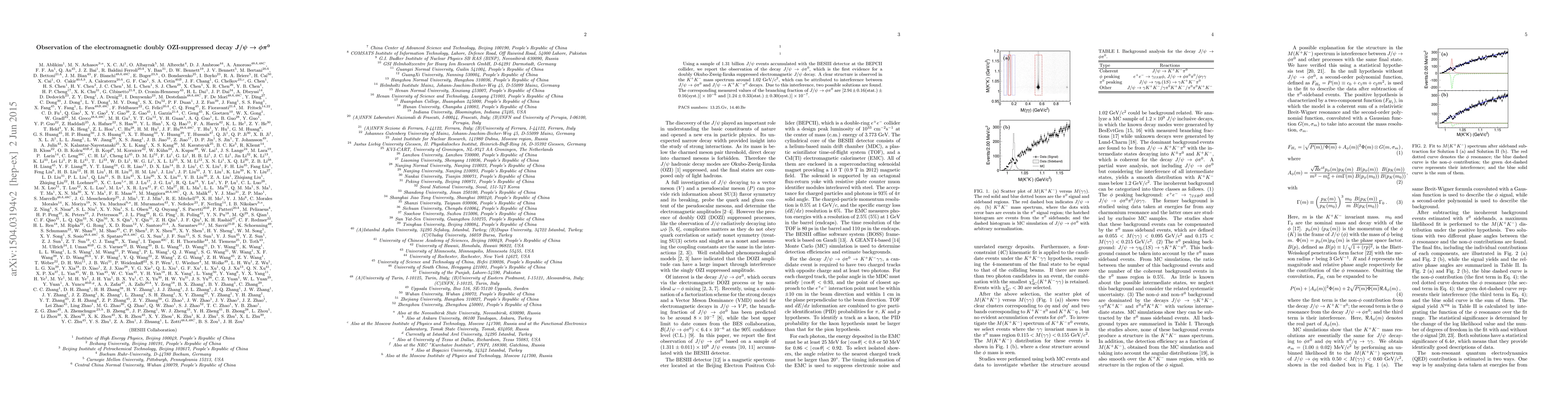 The BESIII detector observed the electromagnetic decay $J/\psi \rightarrow \phi\pi^{0}$, providing the first evidence for a doubly OZI-suppressed $J/\psi$ decay. The branching fraction measurements reveal two possible solutions due to interference effects.
