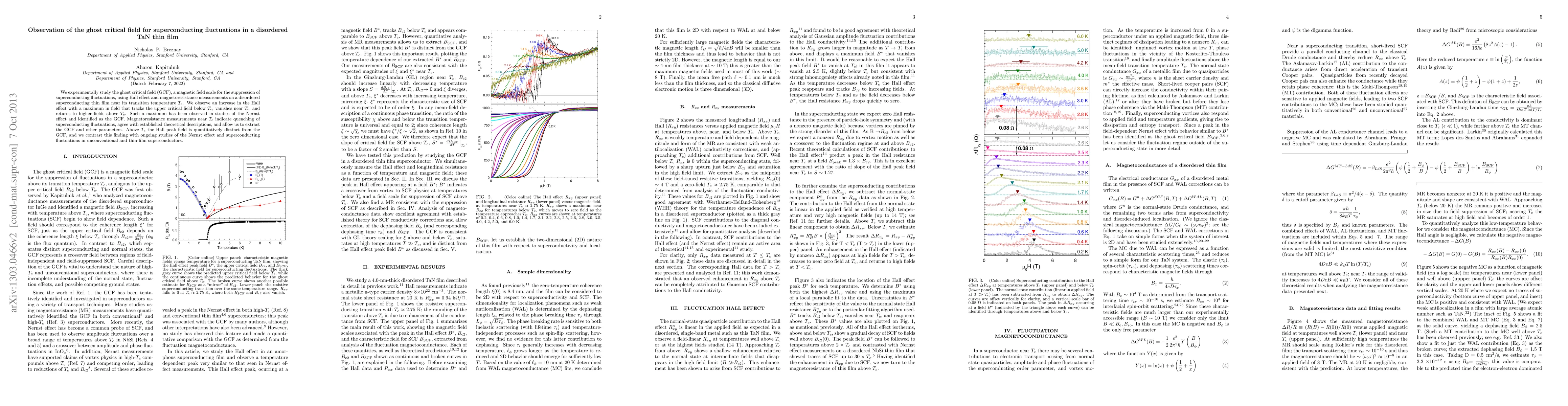 We experimentally study the ghost critical field (GCF), a magnetic field scale for the suppression of superconducting fluctuations, using Hall effect and magnetoresistance measurements on a disordered superconducting thin film near its transition temperature $T_c$. We observe an increase in the Hall effect with a maximum in field that tracks the upper critical field below $T_c$, vanishes near $T_c$, and returns to higher fields above $T_c$. Such a maximum has been observed in studies of the Nernst effect and identified as the GCF. Magnetoresistance measurements near $T_c$ indicate quenching of superconducting fluctuations, agree with established theoretical descriptions, and allow us to extract the GCF and other parameters. Above $T_c$ the Hall peak field is quantitatively distinct from the GCF, and we contrast this finding with ongoing studies of the Nernst effect and superconducting fluctuations in unconventional and thin-film superconductors.