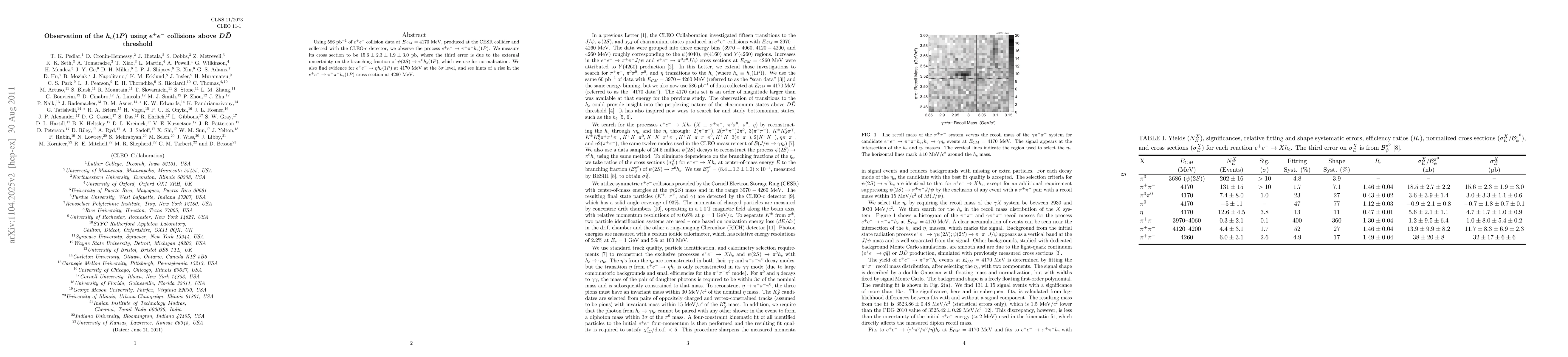 Researchers observed the production of the h_c(1P) particle in e^+e^- collisions, measuring its cross-section and finding evidence for related processes at 4170MeV and hints of a rise at 4260MeV.