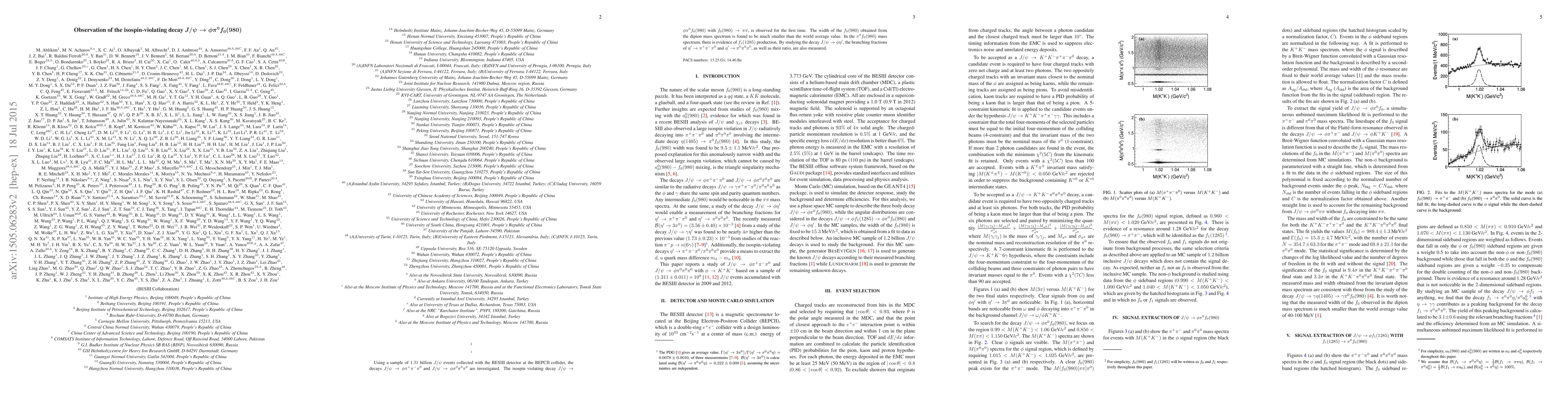 This study observes the isospin-violating decay $J/\psi \to \phi \pi^{0} f_{0}(980)$ for the first time, revealing a smaller $f_{0}(980)$ width than the world average. Additionally, evidence of $f_1(1285)$ production is found in the $\pi^{0} f_{0}(980)$ mass spectrum.