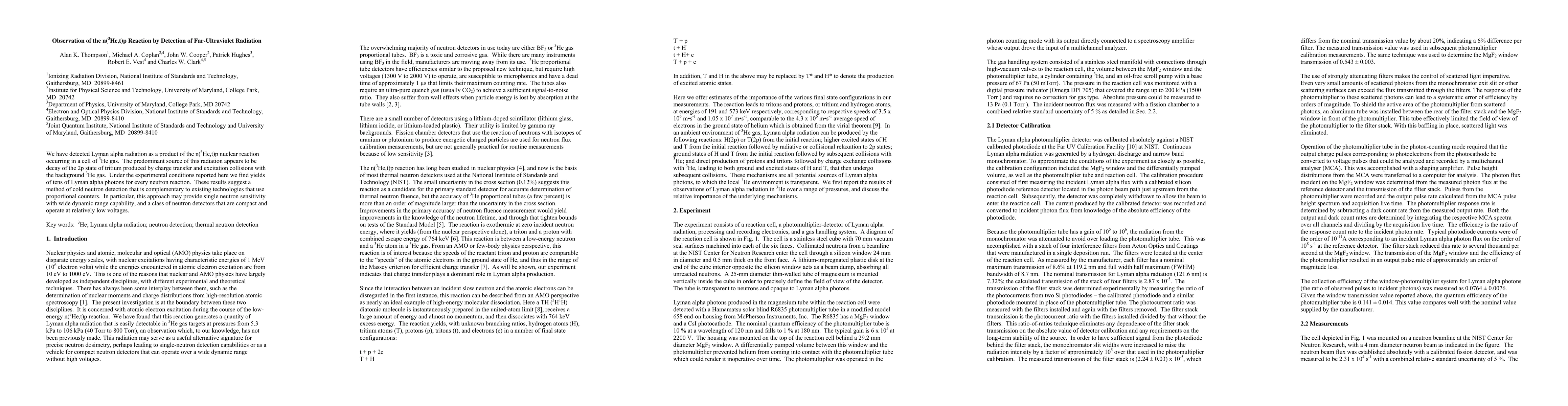 This paper reports the detection of Lyman alpha radiation from the n(3He,t)p nuclear reaction in 3He gas, indicating the decay of tritium's 2p state. The findings suggest a novel method for cold neutron detection, offering single neutron sensitivity and potential for compact, low-voltage neutron detectors.
