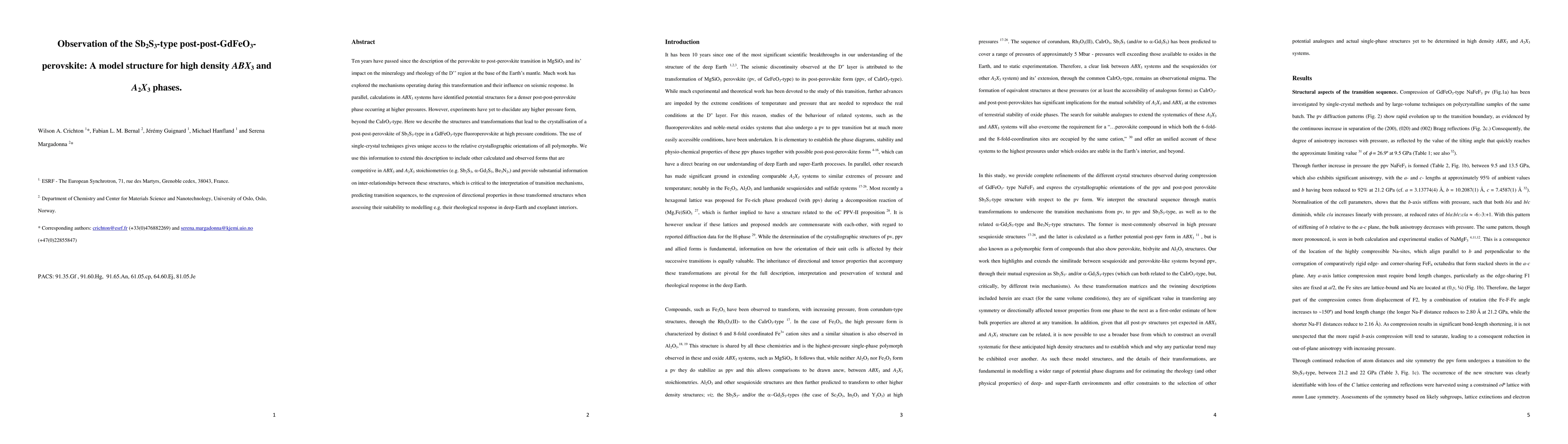 Ten years have passed since the description of the perovskite to post-perovskite transition in MgSiO3 and its' impact on the mineralogy and rheology of the D" region at the base of the Earth's mantle. Much work has explored the mechanisms operating during this transformation and their influence on seismic response. In parallel, calculations in ABX3 systems have identified potential structures for a denser post-post-perovskite phase occurring at higher pressures. However, experiments have yet to elucidate any higher pressure form, beyond the CaIrO3-type. Here we describe the structures and transformations that lead to the crystallisation of a post-post-perovskite of Sb2S3-type in a GdFeO3-type fluoroperovskite at high pressure conditions. The use of single-crystal techniques gives unique access to the relative crystallographic orientations of all polymorphs. We use this information to extend this description to include other calculated and observed forms that are competitive in ABX3 and A2X3 stoichiometries (e.g. Sb2S3, a-Gd2S3, Be3N2) and provide substantial information on inter-relationships between these structures, which is critical to the interpretation of transition mechanisms, predicting transition sequences, to the expression of directional properties in those transformed structures when assessing their suitability to modelling e.g. their rheological response in deep-Earth and exoplanet interiors.