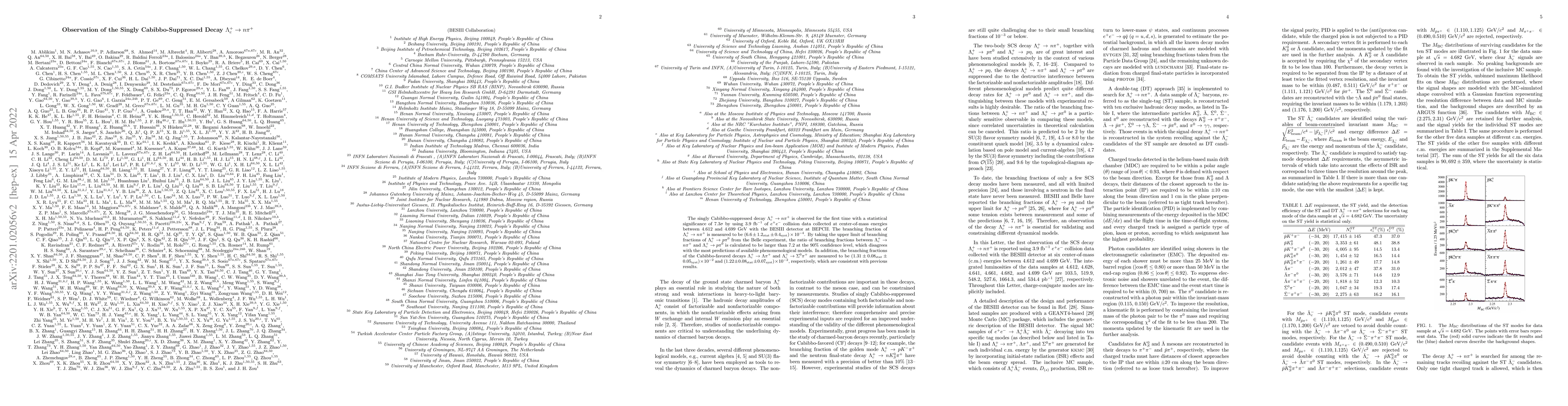 The first observation of the singly Cabibbo-suppressed decay $\Lambda_{c}^{+} \to n\pi^{+}$ is reported with a branching fraction of $(6.6\pm1.2_{\rm stat}\pm0.4_{\rm syst})\times 10^{-4}$, challenging current phenomenological model predictions. Additionally, the branching fractions for the Cabibbo-favored decays $\Lambda_{c}^{+} \to \Lambda\pi^{+}$ and $\Lambda_{c}^{+} \to \Sigma^{0}\pi^{+}$ are measured and found consistent with previous results.