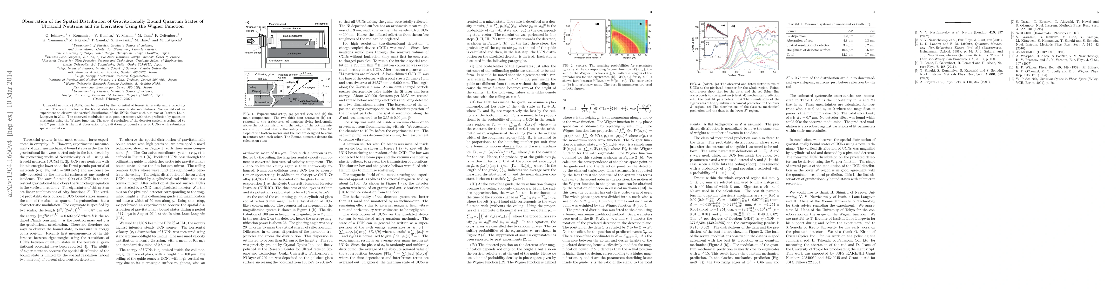 This paper reports an experiment observing the spatial distribution of ultracold neutrons bound by gravity and a reflecting mirror, confirming quantum mechanical predictions using the Wigner function. The study achieved a spatial resolution of 0.7 micrometers, marking the first submicron resolution observation of such gravitationally bound quantum states.