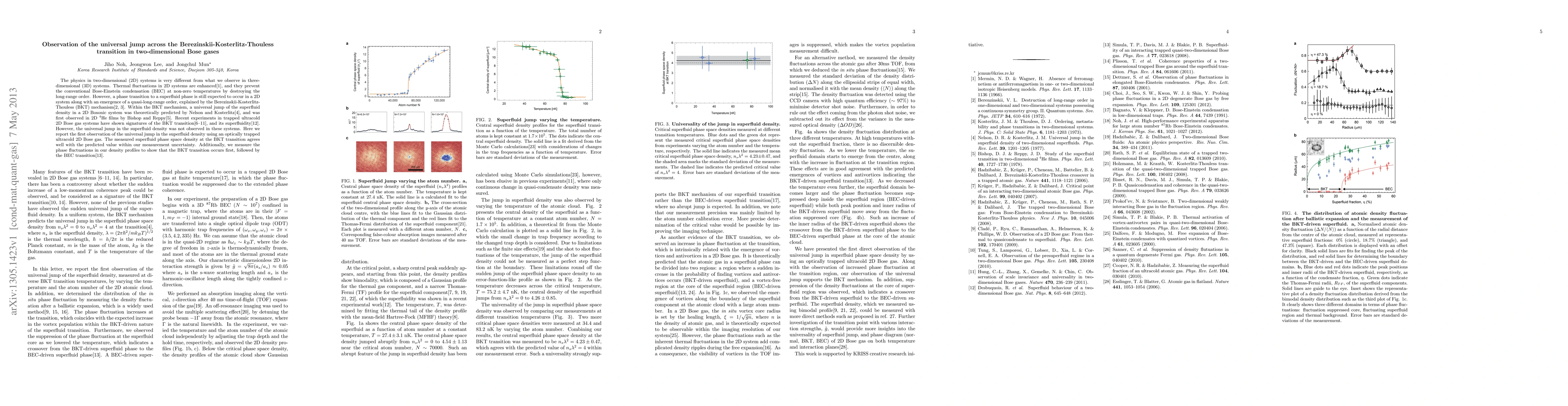 This study provides direct experimental evidence for the universal jump in superfluid density predicted by the BKT mechanism, supporting its role in the 2D superfluid transition rather than the BEC-driven transition.