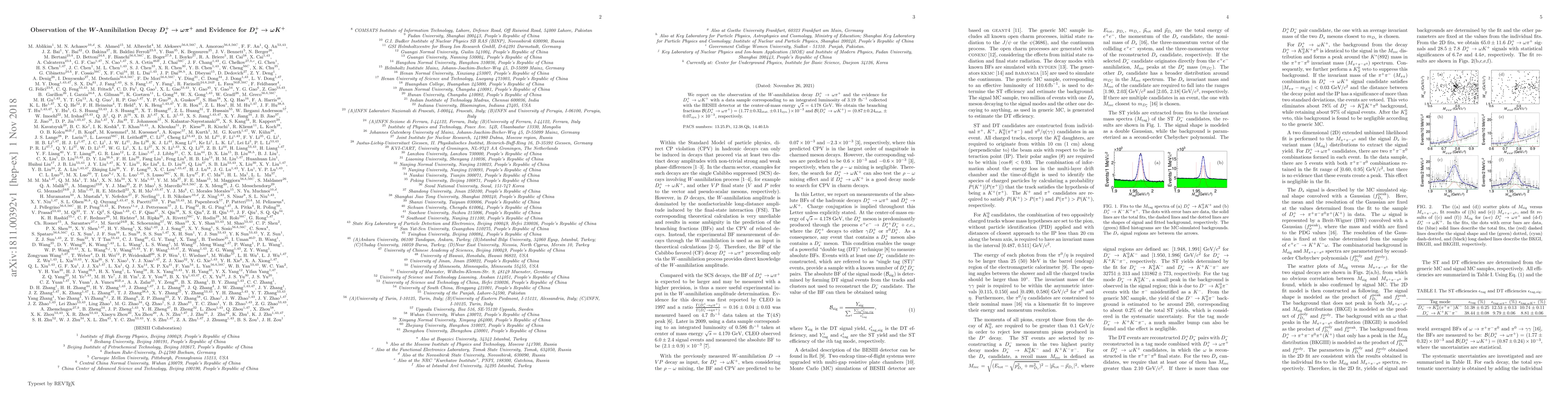 We report on the observation of the $W$-annihilation decay $D^{+}_{s} \rightarrow \omega \pi^{+}$ and the evidence for $D_{s}^{+} \rightarrow \omega K^{+}$ with a data sample corresponding to an integrated luminosity of 3.19 fb$^{-1}$ collected with the BESIII detector at the center-of-mass energy $\sqrt{s} = 4.178$ GeV. We obtain the branching fractions $\mathcal{B}(D^{+}_{s} \rightarrow \omega \pi^{+}) = (1.77\pm0.32_{{\rm stat.}}\pm0.11_{{\rm sys.}}) \times 10^{-3}$ and $\mathcal{B}(D^{+}_{s} \rightarrow \omega K^{+}) = (0.87\pm0.24_{{\rm stat.}}\pm0.07_{{\rm sys.}}) \times 10^{-3}$, respectively.