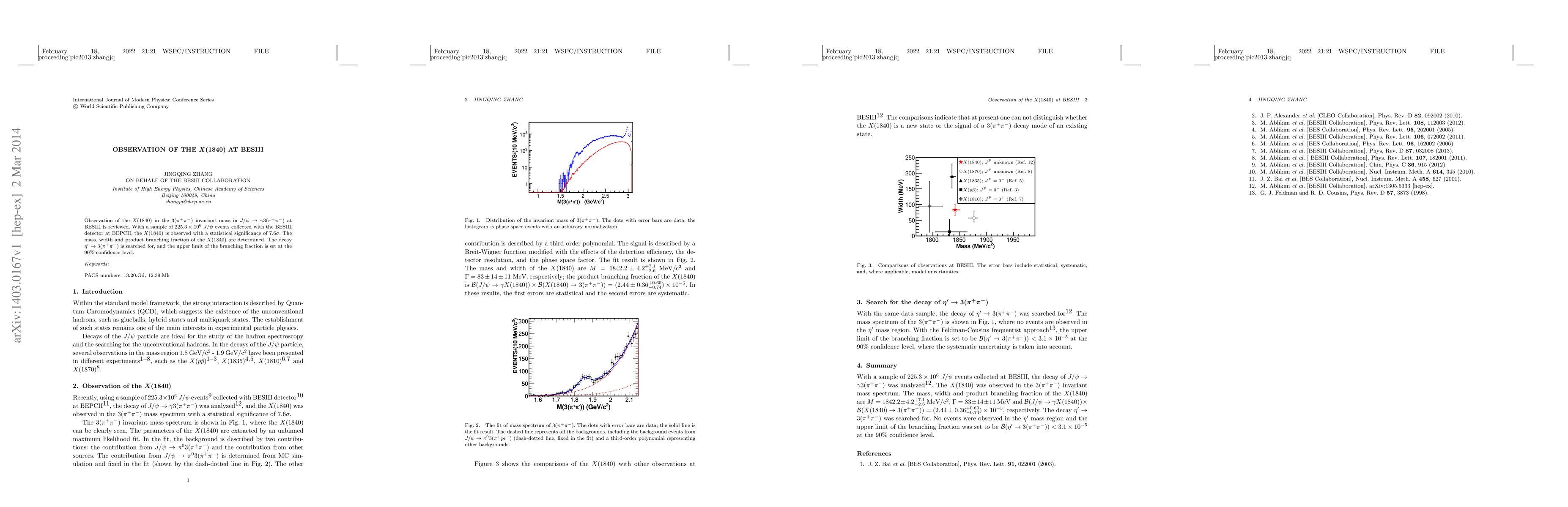 The BESIII detector has observed a new particle called $X(1840)$ with a high statistical significance, measuring its mass, width, and branching fraction. The observation provides insight into the properties of this exotic state and its potential decay modes.