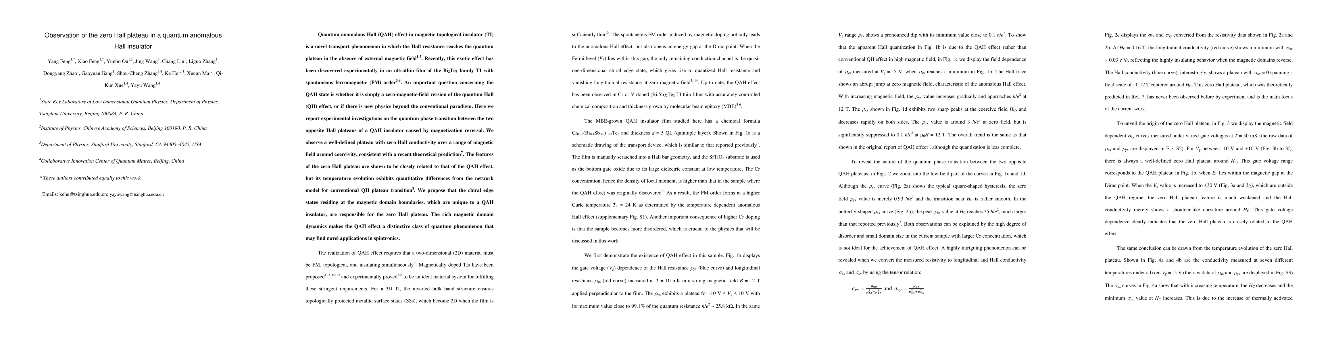 Researchers observe a zero Hall plateau in a quantum anomalous Hall insulator, demonstrating a plateau with zero Hall conductivity during magnetization reversal. This phenomenon, distinct from conventional quantum Hall transitions, is attributed to chiral edge states at magnetic domain boundaries, highlighting its unique role in quantum spintronics.