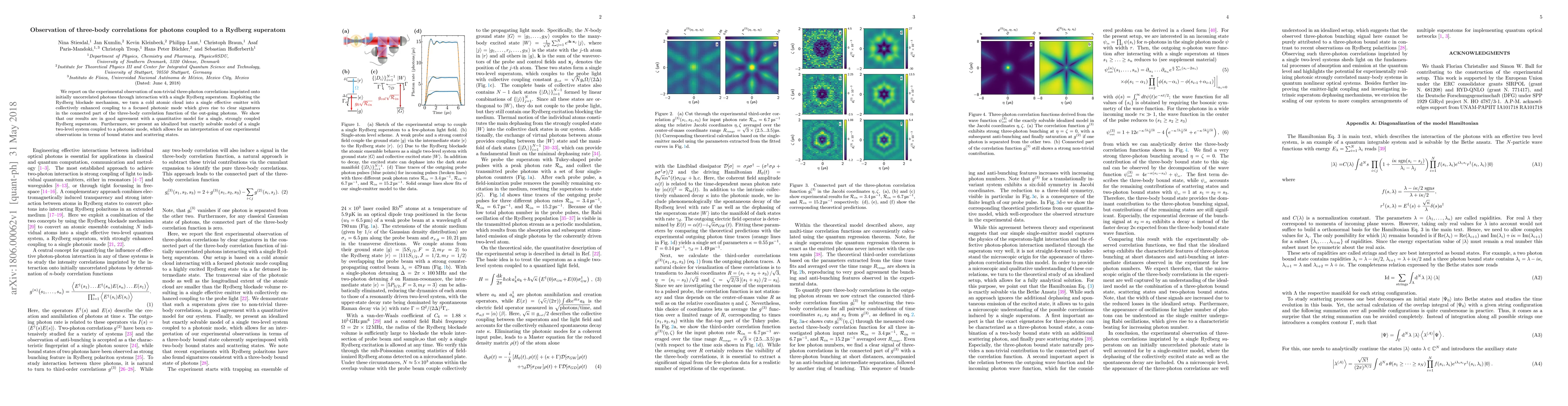 This paper reports the experimental observation of three-photon correlations generated by a Rydberg superatom, demonstrating the Rydberg blockade mechanism's role in creating a single effective emitter. The results align well with a theoretical model, providing insights into bound and scattering states.
