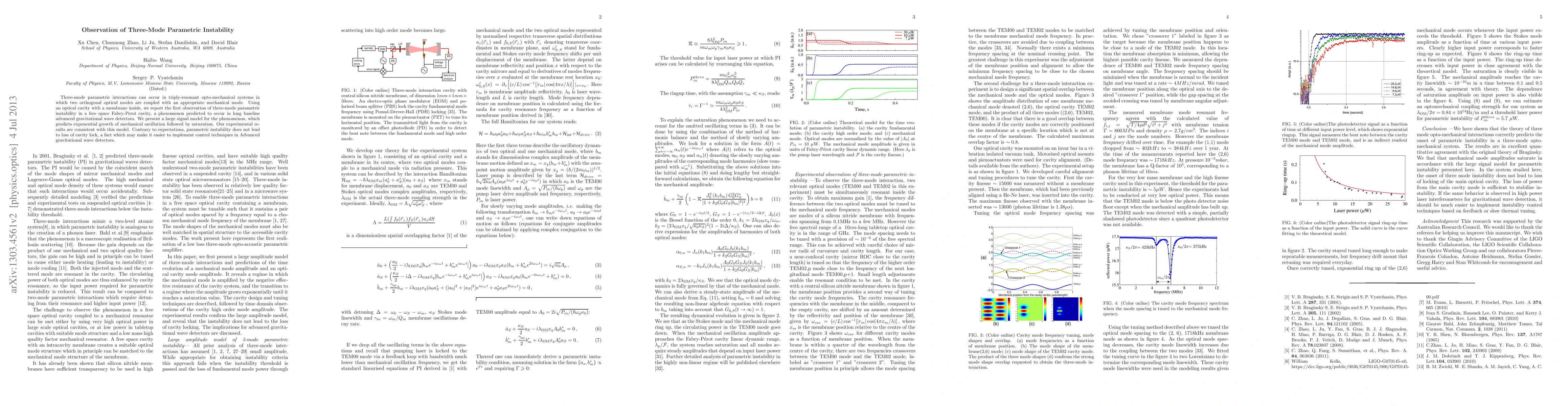 Researchers observed three-mode parametric instability in an optical cavity with a membrane inside, predicting exponential growth of mechanical oscillation followed by saturation, with surprising results showing no loss of cavity lock.