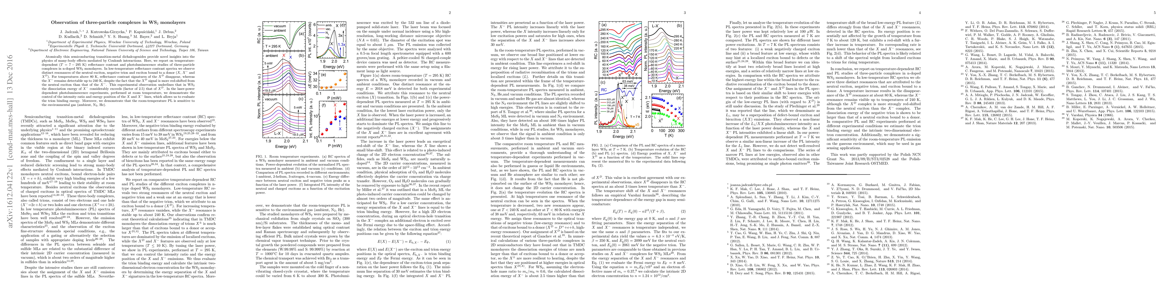 Researchers study three-particle complexes in WS$_2$ monolayers, observing distinct resonances of neutral exciton, trion, and donor-bound exciton at low temperatures. The findings suggest a significant difference in dissociation energy between the trion and donor-bound exciton.