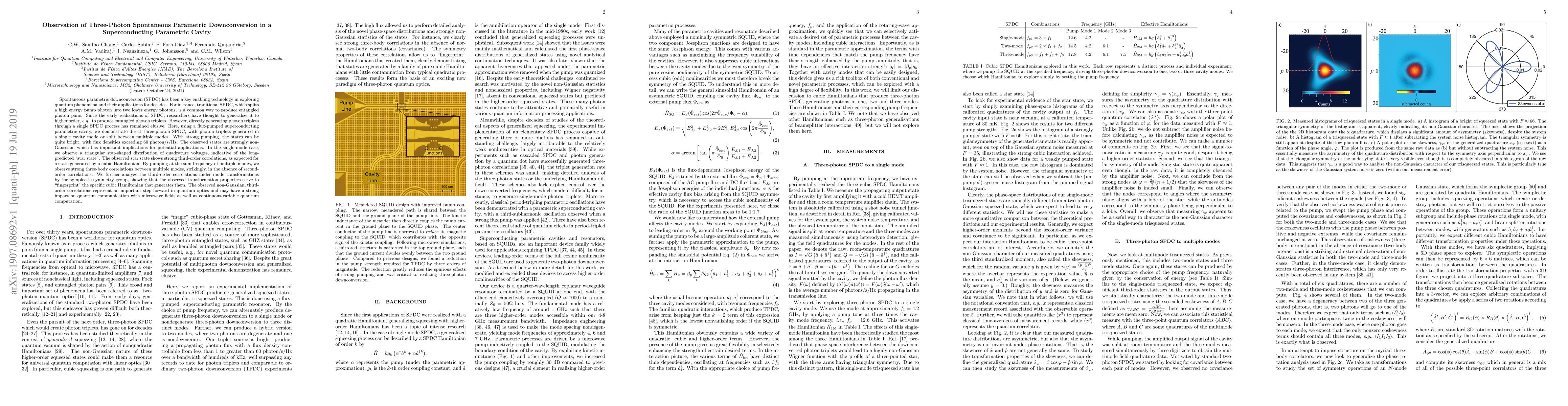 Spontaneous parametric downconversion (SPDC) has been a key enabling technology in exploring quantum phenomena and their applications for decades. For instance, traditional SPDC, which splits a high energy pump photon into two lower energy photons, is a common way to produce entangled photon pairs. Since the early realizations of SPDC, researchers have thought to generalize it to higher order, e.g., to produce entangled photon triplets. However, directly generating photon triplets through a single SPDC process has remained elusive. Here, using a flux-pumped superconducting parametric cavity, we demonstrate direct three-photon SPDC, with photon triplets generated in a single cavity mode or split between multiple modes. With strong pumping, the states can be quite bright, with flux densities exceeding 60 photon/s/Hz. The observed states are strongly non-Gaussian, which has important implications for potential applications. In the single-mode case, we observe a triangular star-shaped distribution of quadrature voltages, indicative of the long-predicted "star state". The observed star state shows strong third-order correlations, as expected for a state generated by a cubic Hamiltonian. By pumping at the sum frequency of multiple modes, we observe strong three-body correlations between multiple modes, strikingly, in the absence of second-order correlations. We further analyze the third-order correlations under mode transformations by the symplectic symmetry group, showing that the observed transformation properties serve to "fingerprint" the specific cubic Hamiltonian that generates them. The observed non-Gaussian, third-order correlations represent an important step forward in quantum optics and may have a strong impact on quantum communication with microwave fields as well as continuous-variable quantum computation.
