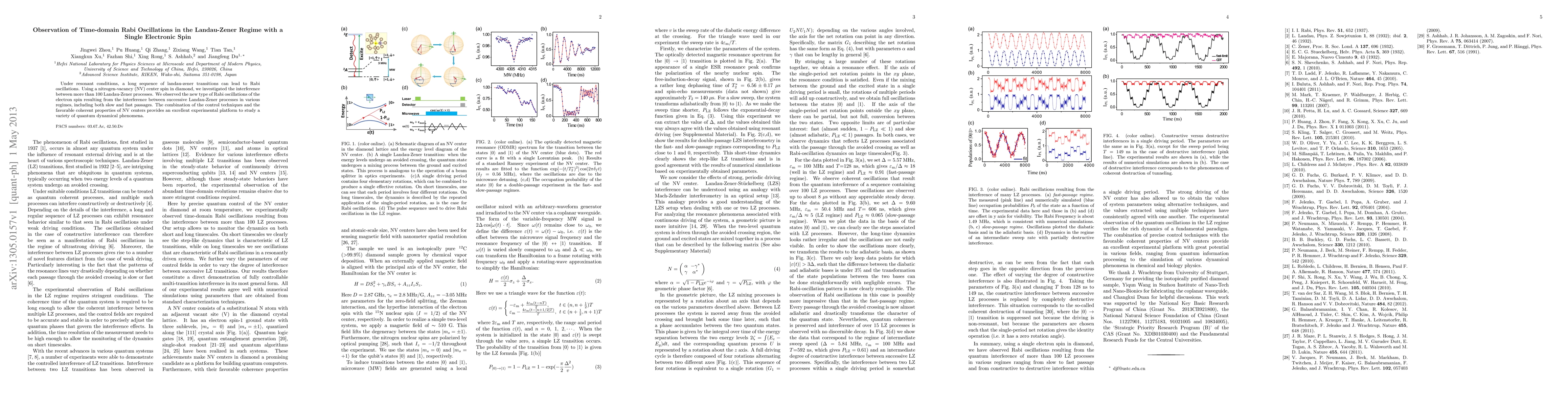 This paper investigates Rabi oscillations in a nitrogen-vacancy center spin in diamond, observing interference between over 100 Landau-Zener transitions. The study reveals novel Rabi oscillations arising from the interplay of successive Landau-Zener processes across different passage speeds, highlighting the NV center's potential for quantum dynamics research.