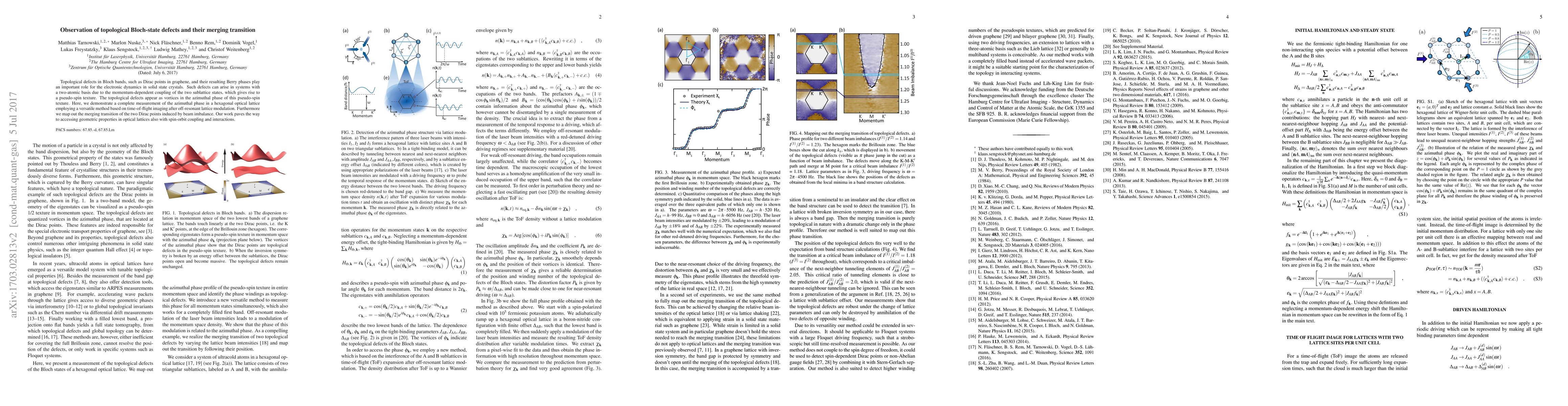 Researchers observed topological Bloch-state defects in a hexagonal optical lattice, mapping their merging transition and paving the way for studying spin-orbit coupling and interactions.