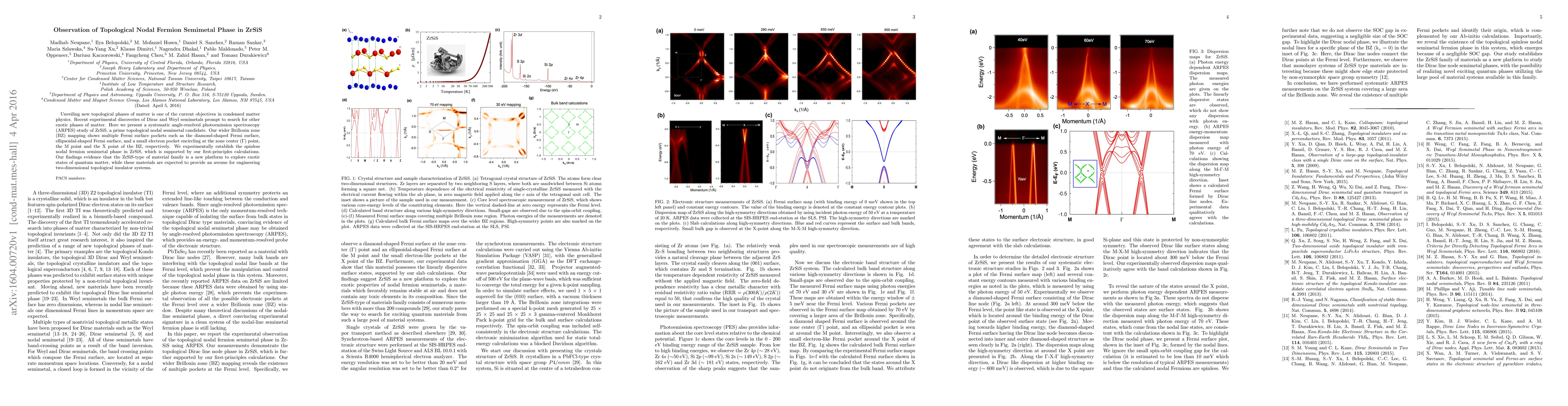 This study uses angle-resolved photoemission spectroscopy to confirm the presence of a topological nodal fermion semimetal phase in ZrSiS, revealing multiple Fermi surface pockets and establishing it as a new platform for exploring quantum matter. The findings suggest potential for engineering two-dimensional topological insulator systems.