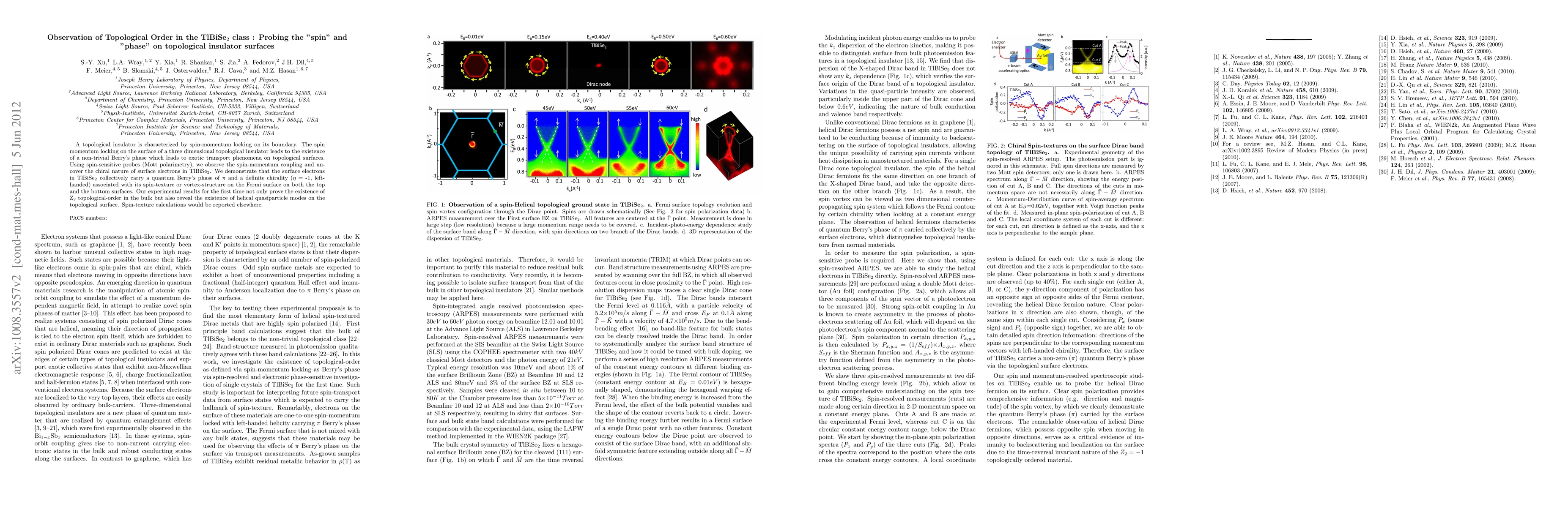 A topological insulator is characterized by spin-momentum locking on its boundary. The spin momentum locking on the surface of a three dimensional topological insulator leads to the existence of a non-trivial Berry's phase which leads to exotic transport phenomena on topological surfaces. Using spin-sensitive probes (Mott polarimetry), we observe the spin-momentum coupling and uncover the chiral nature of surface electrons in TlBiSe2. We demonstrate that the surface electrons in TlBiSe2 collectively carry a quantum Berry's phase of $\pi$ and a definite chirality ($\eta$ = -1, left-handed) associated with its spin-texture or vortex-structure on the Fermi surface on both the top and the bottom surfaces. Our experimental results for the first time not only prove the existence of Z2 topological-order in the bulk but also reveal the existence of helical quasiparticle modes on the topological surface. Spin-texture calculations would be reported elsewhere.
