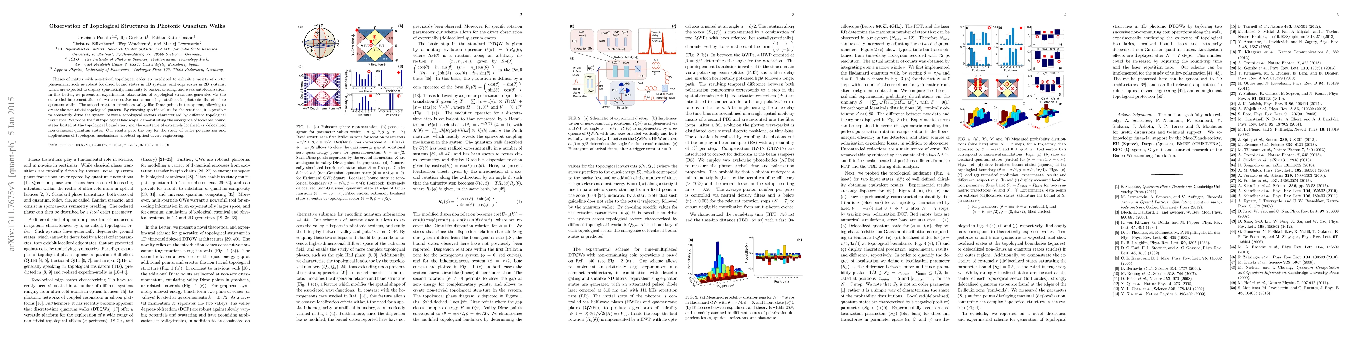 This paper reports an experimental observation of topological structures in photonic quantum walks, demonstrating the emergence of localized bound states and non-Gaussian quantum states through controlled rotations. The study highlights the potential for valley-based electronics and robust optical device engineering.