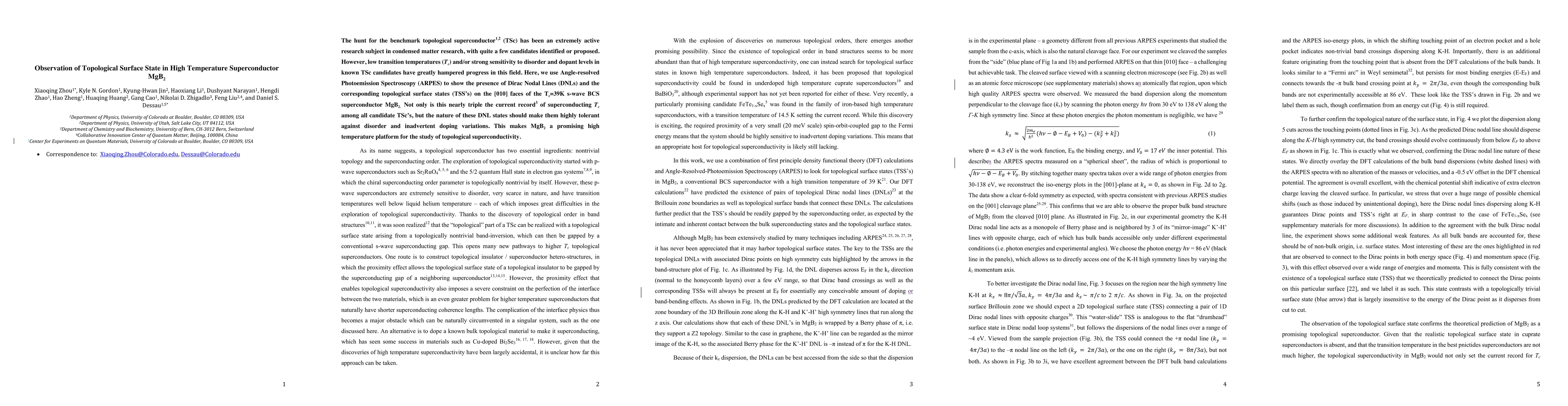 This paper reports the observation of topological surface states in the high-temperature superconductor MgB2 using ARPES, revealing Dirac Nodal Lines and indicating high tolerance to disorder. MgB2, with a Tc of 39K, stands out as a promising candidate for studying topological superconductivity due to its superior Tc and robustness.