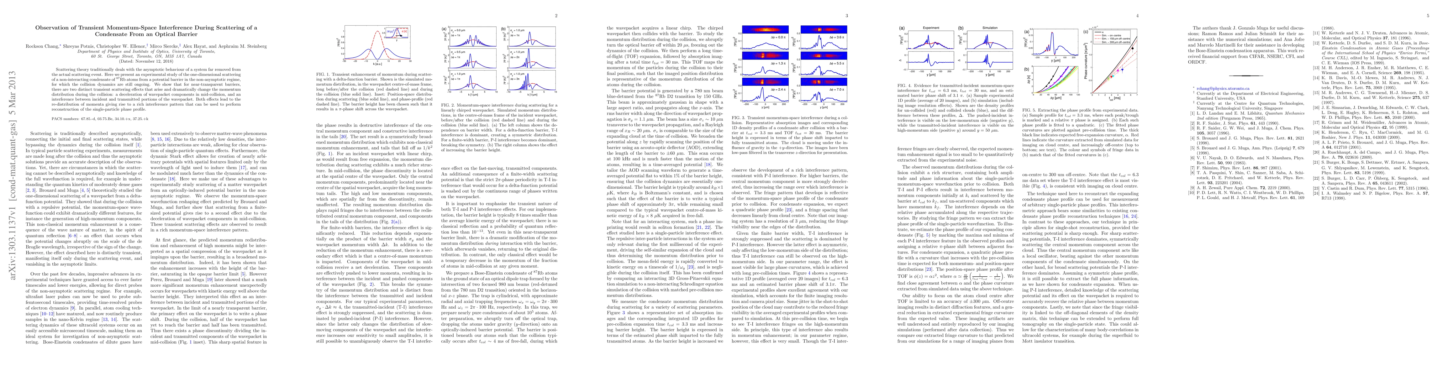 Scattering theory traditionally deals with the asymptotic behaviour of a system far removed from the actual scattering event. Here we present an experimental study of the one-dimensional scattering of a non-interacting condensate of 87-Rb atoms from a potential barrier in the non-asymptotic regime, for which the collision dynamics are still ongoing. We show that for near-transparent barriers, there are two distinct transient scattering effects that arise and dramatically change the momentum distribution during the collision: a deceleration of wavepacket components in mid-collision, and an interference between incident and transmitted portions of the wavepacket. Both effects lead to the re-distribution of momenta giving rise to a rich interference pattern that can be used to perform reconstruction of the single-particle phase profile.