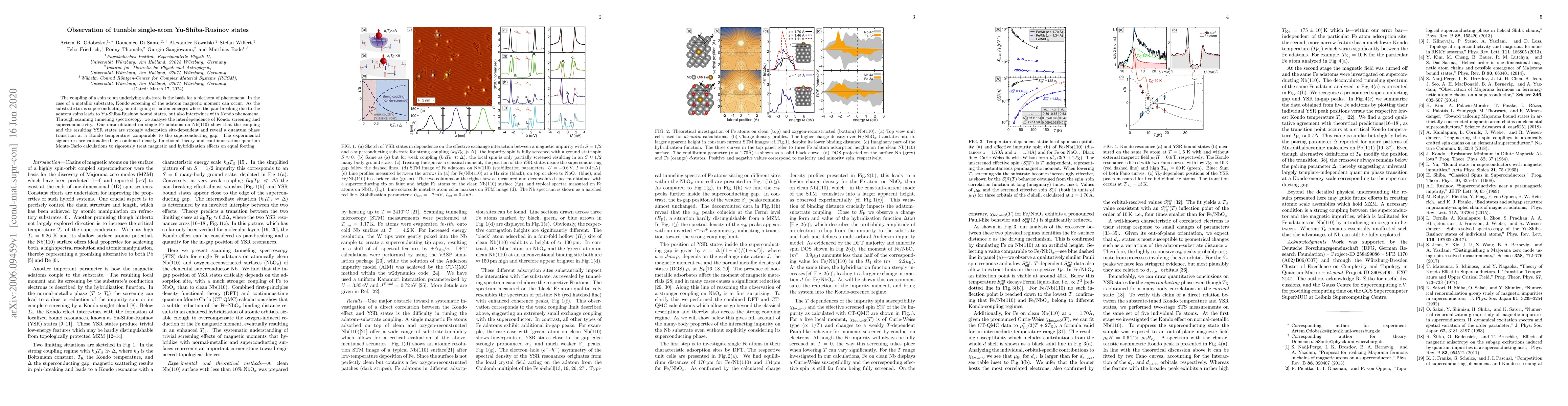The coupling of a spin to an underlying substrate is the basis for a plethora of phenomena. In the case of a metallic substrate, Kondo screening of the adatom magnetic moment can occur. As the substrate turns superconducting, an intriguing situation emerges where the pair breaking due to the adatom spins leads to Yu-Shiba-Rusinov bound states, but also intertwines with Kondo phenomena. Through scanning tunneling spectroscopy, we analyze the interdependence of Kondo screening and superconductivity. Our data obtained on single Fe adatoms on Nb(110) show that the coupling and the resulting YSR states are strongly adsorption site-dependent and reveal a quantum phase transition at a Kondo temperature comparable to the superconducting gap. The experimental signatures are rationalized by combined density functional theory and continuous-time quantum Monte-Carlo calculations to rigorously treat magnetic and hybridization effects on equal footing.
