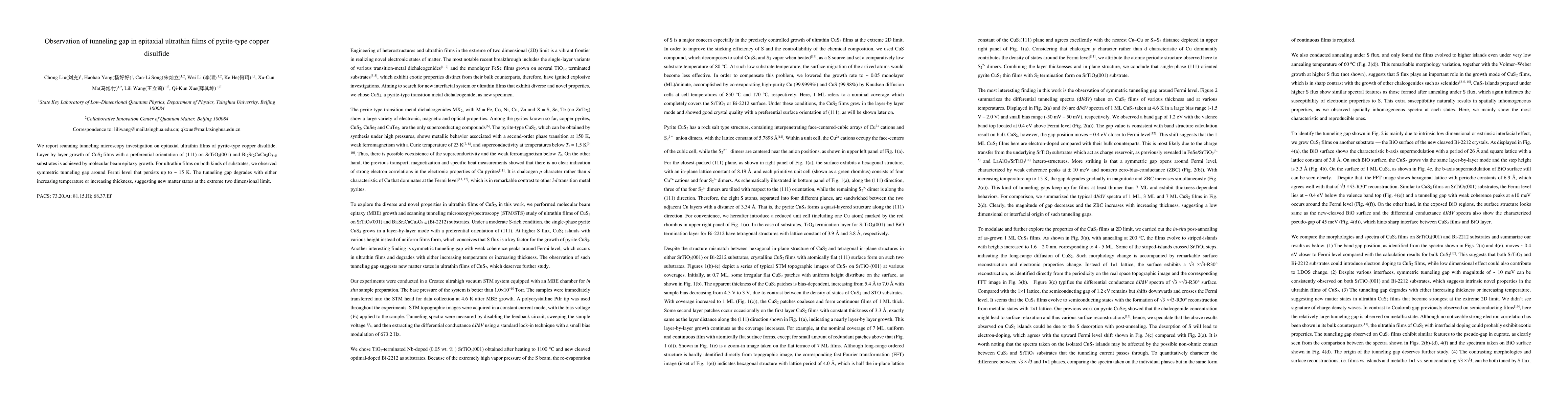 This study reports on the observation of a tunneling gap in epitaxial ultrathin films of pyrite-type copper disulfide using scanning tunneling microscopy. The films show a symmetric tunneling gap around the Fermi level that persists up to ~15 K, degrading with temperature and film thickness, indicating novel two-dimensional matter states.