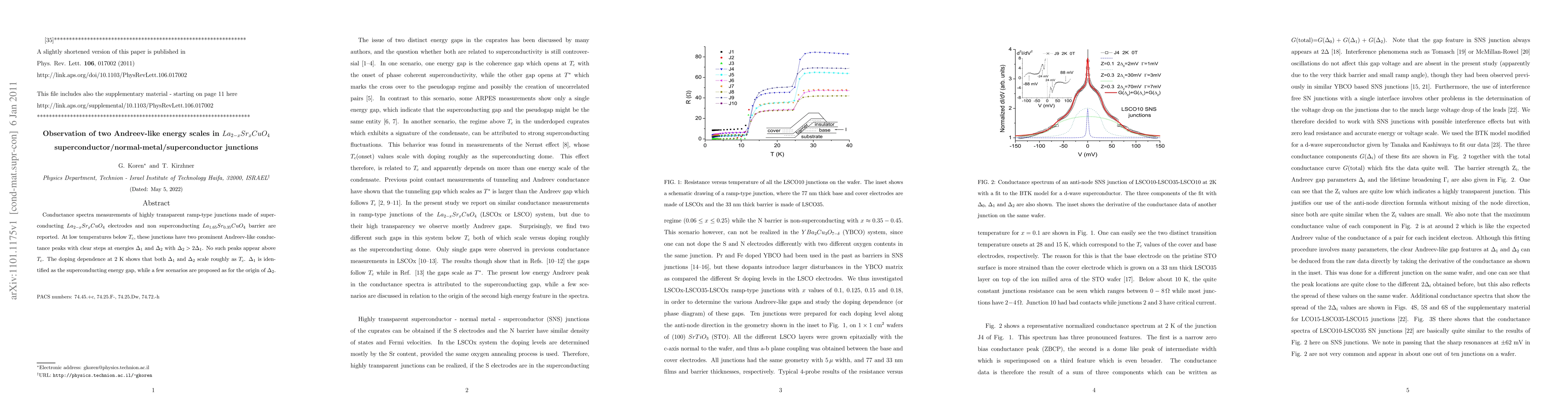 Researchers observed two Andreev-like energy scales in superconductor/normal-metal/superconductor junctions made of $La_{2-x}Sr_{x}CuO_4$, with the lower scale identified as the superconducting energy gap and the origin of the higher scale still unknown.