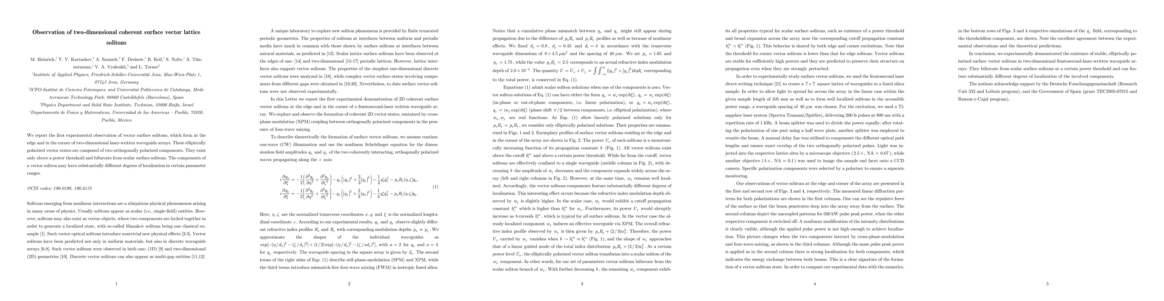 This paper reports the first experimental observation of vector surface solitons in two-dimensional laser-written waveguide arrays, which exhibit elliptical polarization and bifurcate from scalar solitons above a power threshold. The vector solitons' components can have varying degrees of localization.