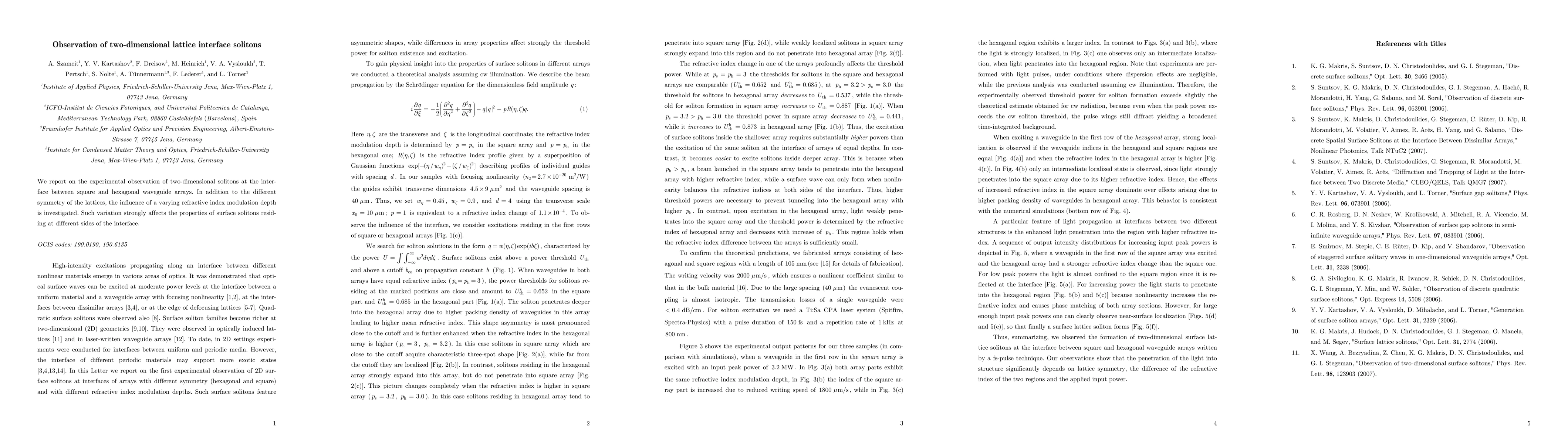 This paper reports the experimental observation of two-dimensional solitons at the interface between square and hexagonal waveguide arrays, highlighting the impact of varying refractive index modulation depth on the properties of these solitons. The study reveals significant differences in soliton behavior due to the differing lattice symmetries.