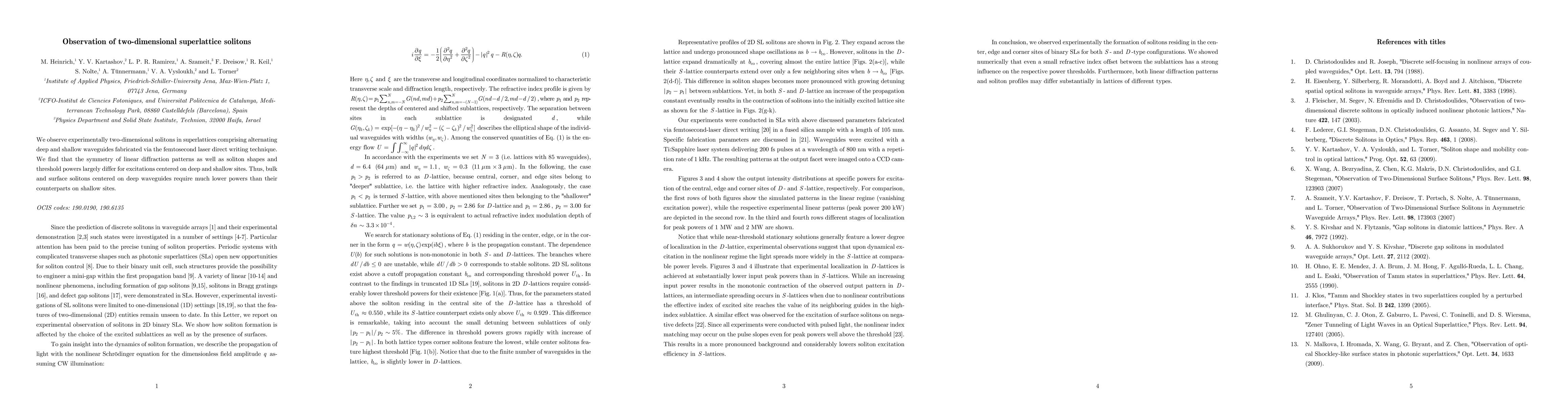 This research paper experimentally observes two-dimensional solitons in superlattices made with alternating deep and shallow waveguides, revealing significant differences in symmetry, shape, and threshold power between solitons centered on deep versus shallow sites. Deep-site solitons require much lower power compared to those on shallow sites.