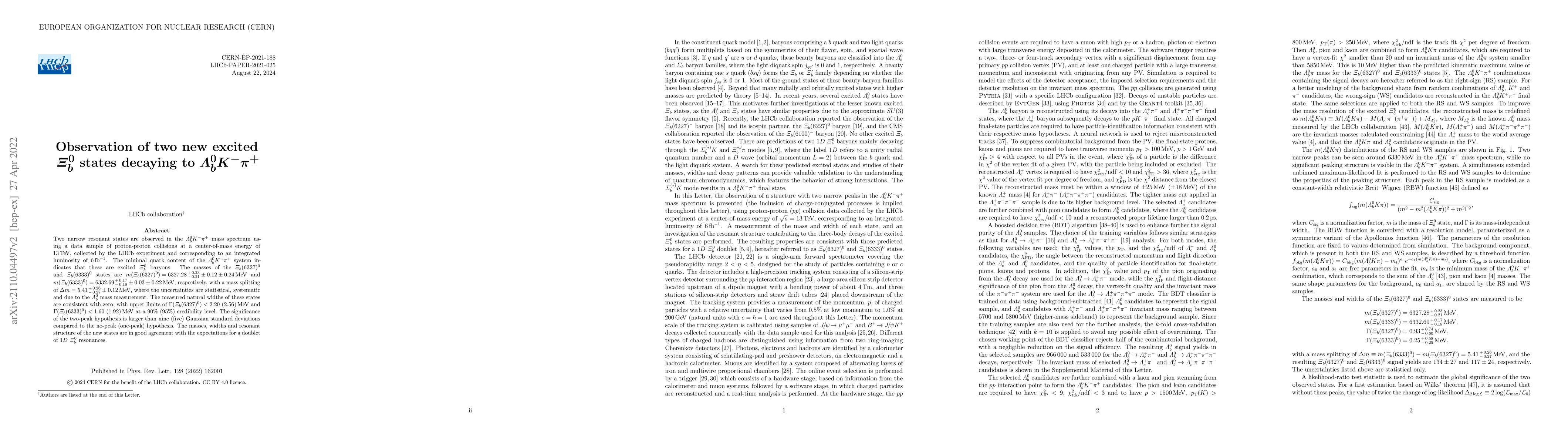 Researchers at LHCb experiment observe two new excited ξxi_b^0 states decaying to λ_b^0 K^- φ^+, with masses measured as 6327.28 MeV and 6332.69 MeV, suggesting a doublet of 1D ξxi_b^0 resonances.