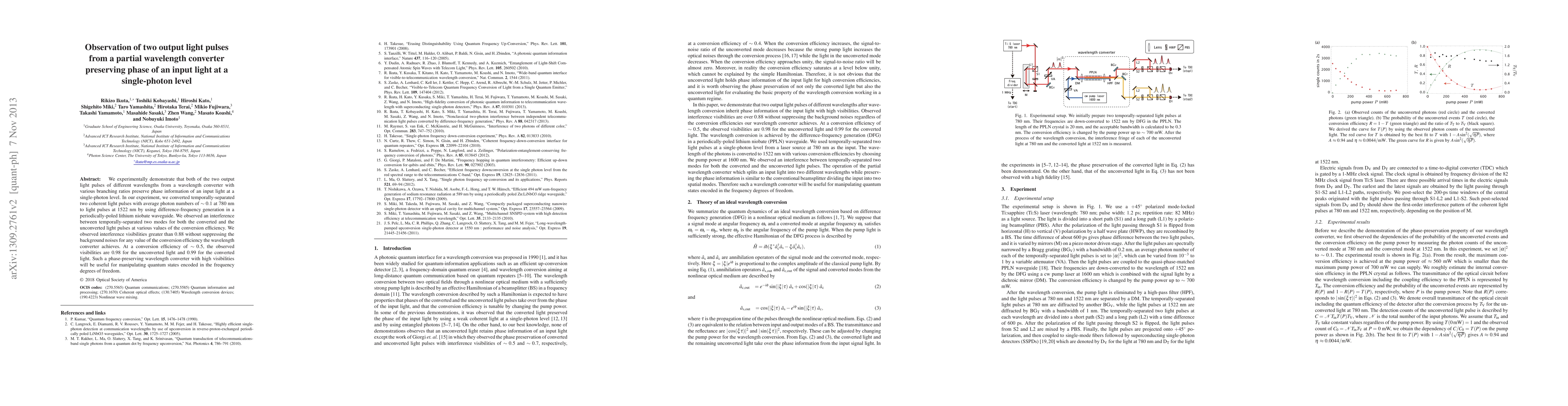 This research demonstrates the preservation of phase information in both converted and unconverted light pulses at a single-photon level using a partial wavelength converter. Experiments show high interference visibilities (greater than 0.88) for both pulses, even at low conversion efficiencies, with optimal values reaching 0.99 for converted light.