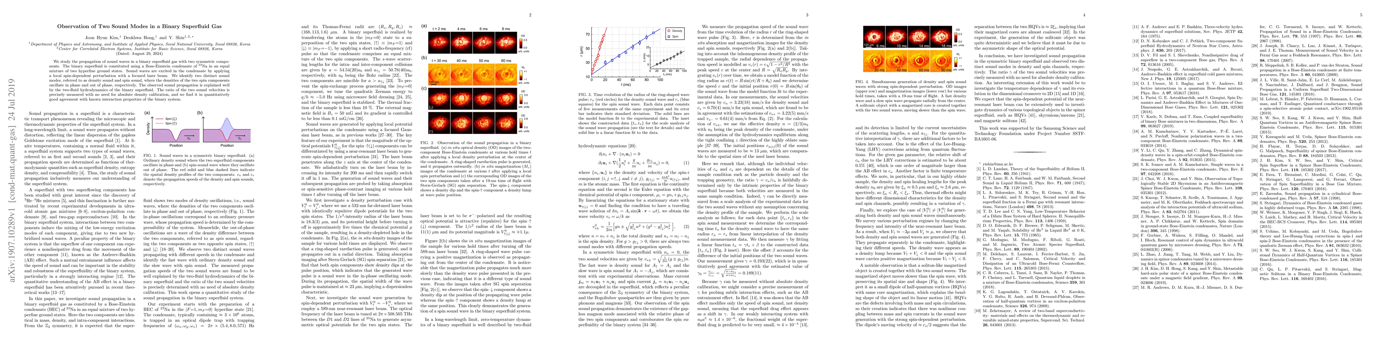 This paper investigates sound wave propagation in a binary superfluid gas composed of $^{23}$Na atoms, identifying two distinct sound modes: density sound and spin sound, with different oscillation phases of the spin components. The findings align well with the two-fluid hydrodynamics model and confirm the interaction properties of the system.