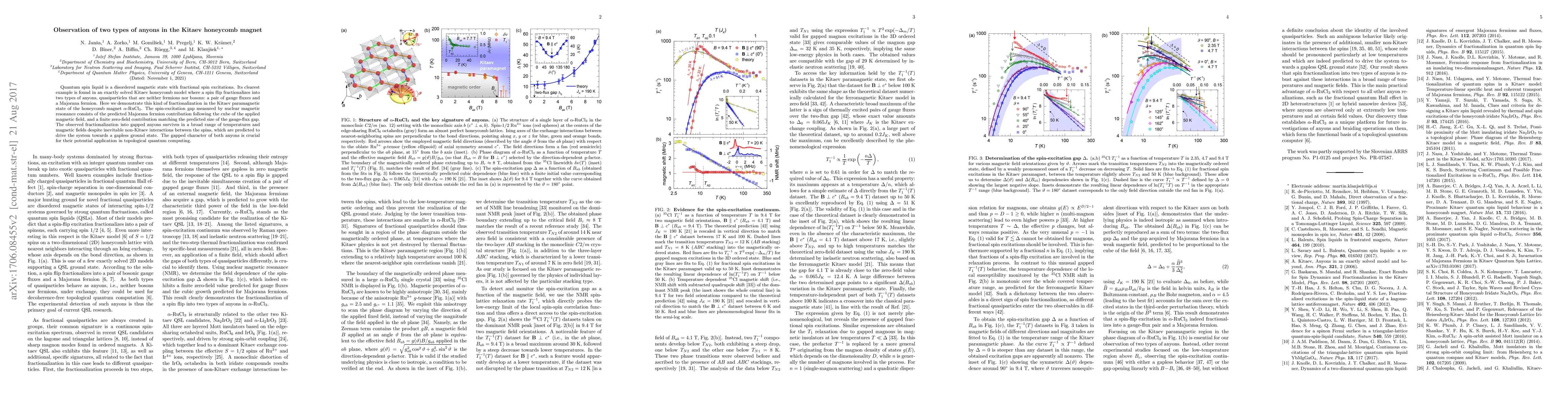 Researchers observed the Kitaev honeycomb magnet $\alpha$-RuCl$_3$ demonstrating fractional spin excitations into two types of anyons: Majorana fermions and gauge fluxes. The spin-excitation gap, measured by NMR, confirms the predicted behavior of these anyons, showing their potential relevance in topological quantum computing.
