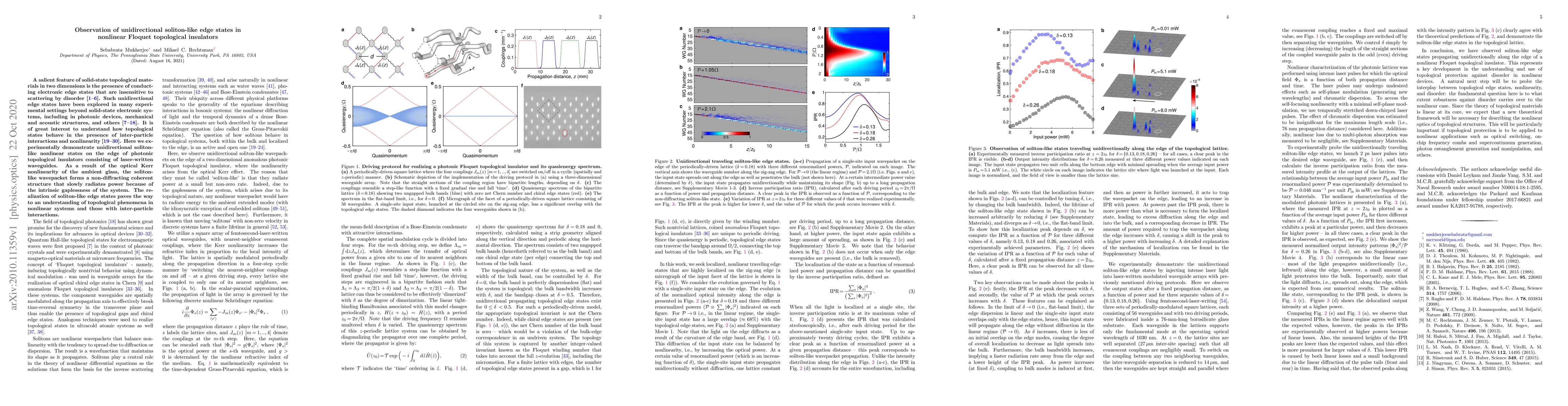 This paper experimentally observes unidirectional soliton-like edge states in nonlinear Floquet topological insulators using laser-written photonic waveguides. The optical Kerr nonlinearity in the glass medium enables the formation of non-diffracting soliton-like wavepackets, highlighting topological phenomena in nonlinear systems.
