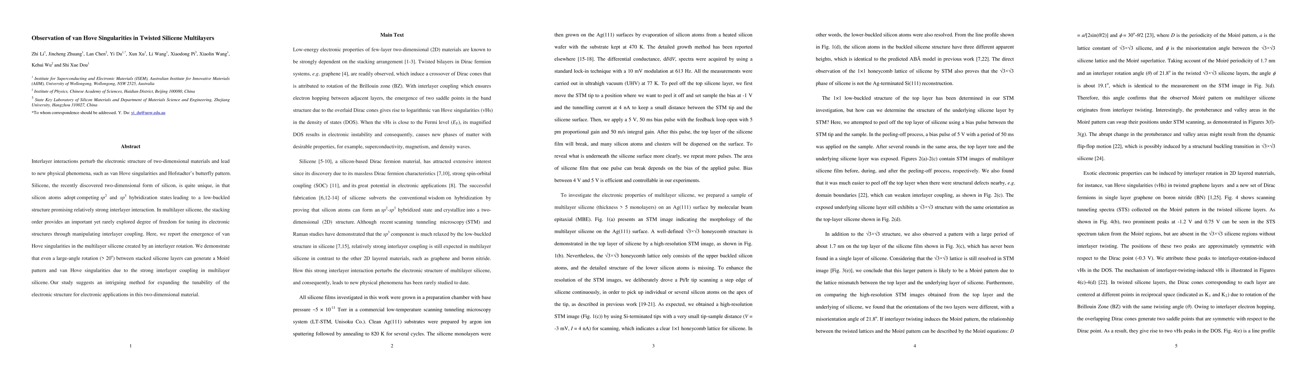 This study observes van Hove singularities in multilayer silicene created through an interlayer rotation, revealing strong interlayer coupling and Moiré patterns due to the unique hybridization states of silicene, suggesting enhanced tunability for electronic applications.