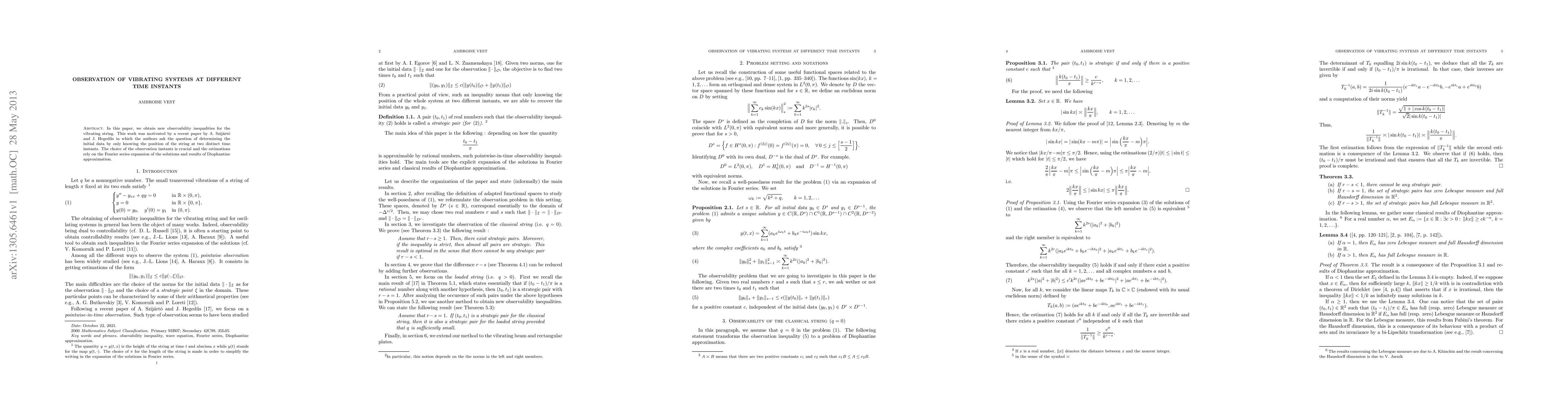 This research derives new observability inequalities for vibrating strings, addressing the problem of determining initial data from string position at two specific time instances. The methodology uses Fourier series expansion and Diophantine approximation results.