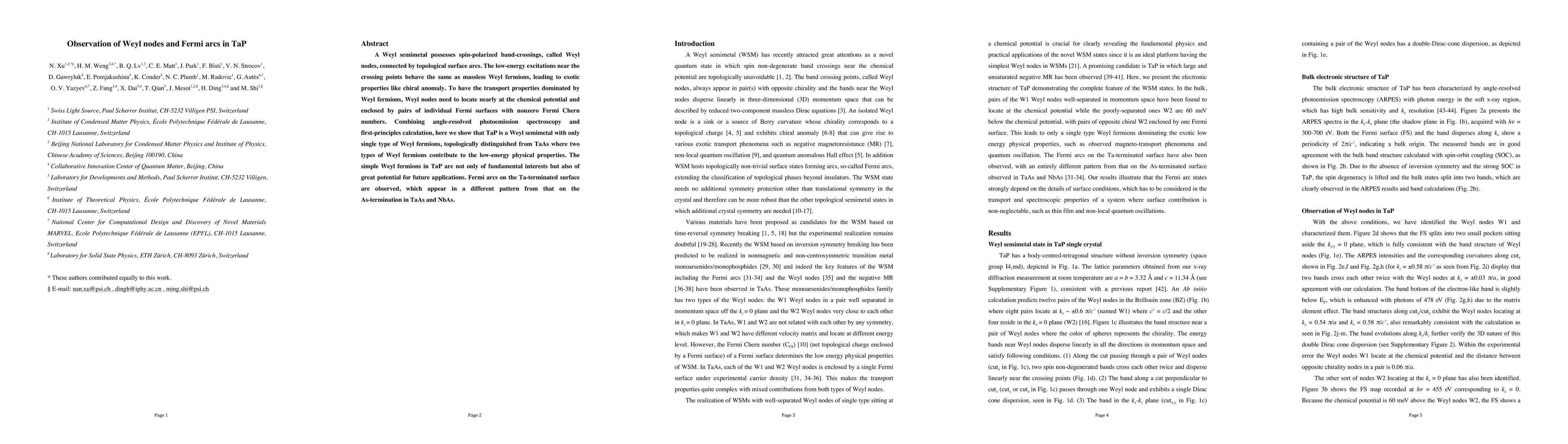 This study reveals that TaP is a Weyl semimetal featuring single type of Weyl fermions and associated Fermi arcs, distinguished from TaAs by its simpler topological structure. Observations via angle-resolved photoemission spectroscopy and calculations show unique transport properties, indicating potential applications.
