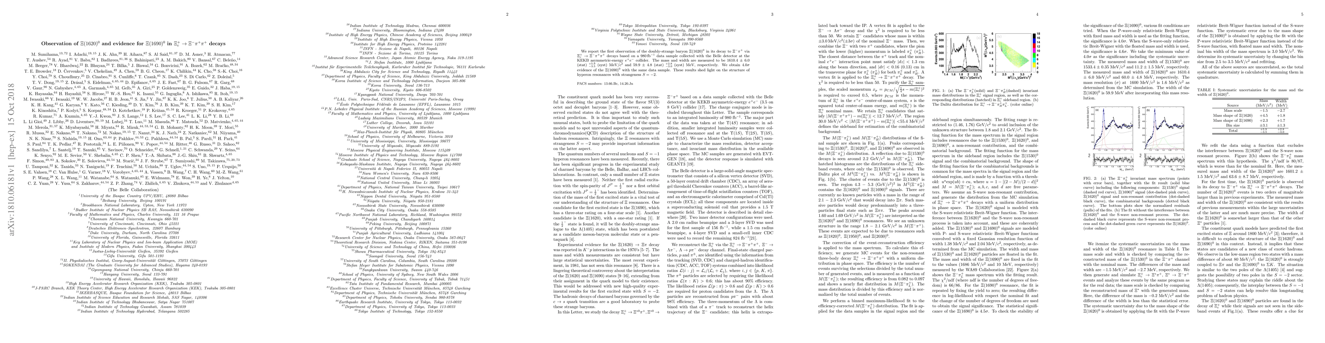 Researchers have observed the doubly-strange baryon μ(1620)°100 in its decay to ε±πχ°1πδαπ decays, measuring its mass and width. Additionally, they found evidence for the μ(1690)°100 with a 4.0× significance.