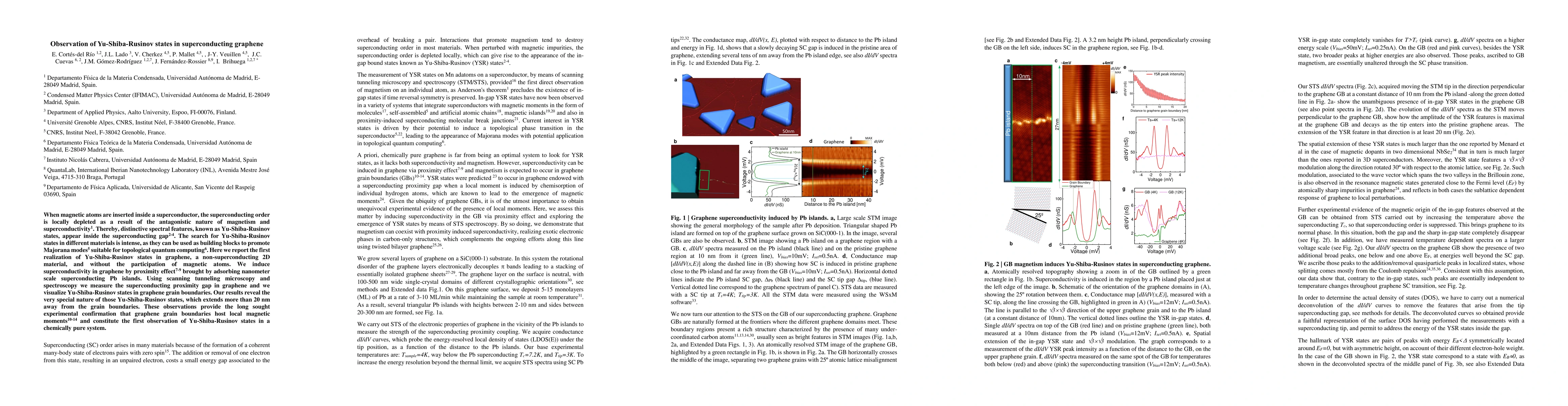 This study observes Yu-Shiba-Rusinov states in graphene induced by proximity to superconducting Pb islands, without magnetic atoms, revealing local magnetic moments at graphene grain boundaries and extending these states over 20 nm. This provides experimental confirmation of local magnetism in graphene grain boundaries.
