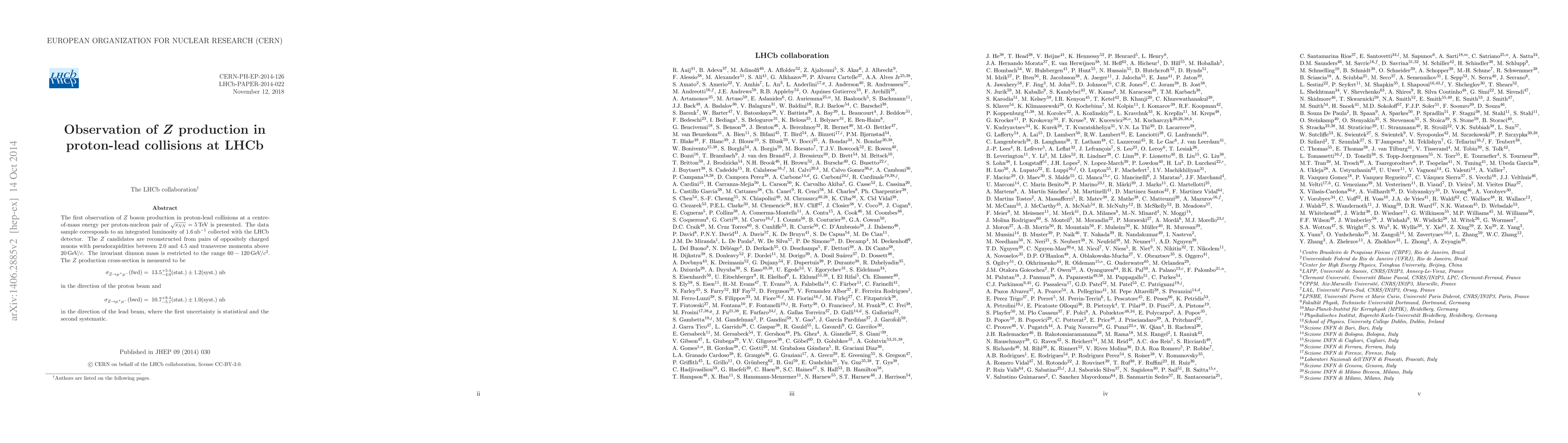 The LHCb experiment reports the first observation of $Z$ boson production in proton-lead collisions at a center-of-mass energy of $\sqrt{s_{NN}}=5~\text{TeV}$, measuring the $Z$ boson cross-section in the forward and backward directions relative to the beams. The results are $\sigma_{Z\to\mu^+\mu^-}(\text{fwd})=13.5^{+5.4}_{-4.0}\pm1.2~\text{nb}$ and $\sigma_{Z\to\mu^+\mu^-}(\text{bwd})=10.7^{+8.4}_{-5.1}\pm1.0~\text{nb}$.