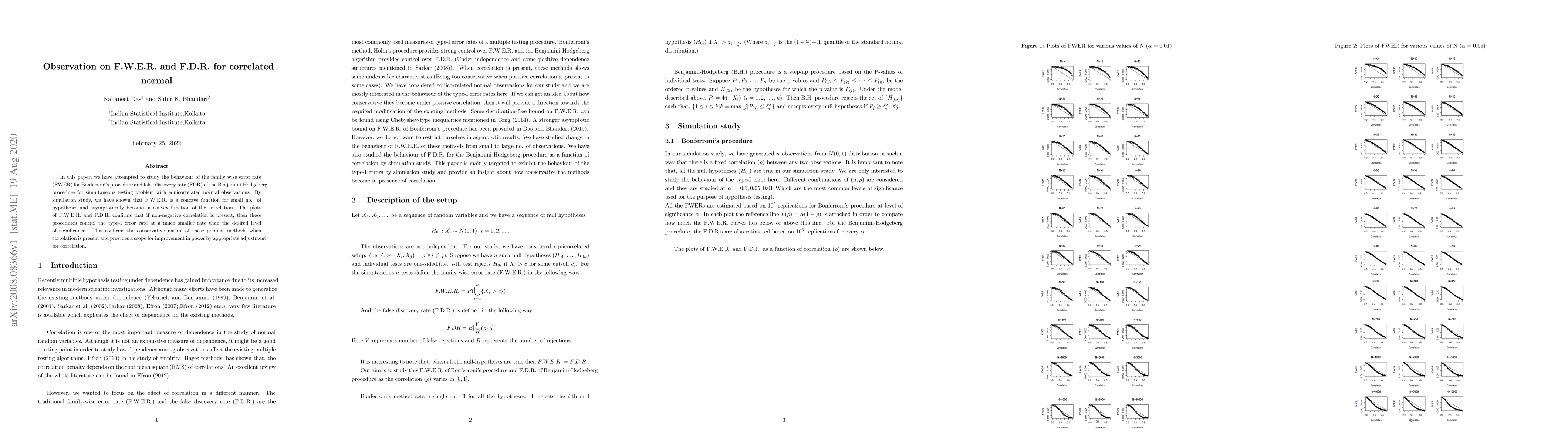 In this paper, we have attempted to study the behaviour of the family wise error rate (FWER) for Bonferroni's procedure and false discovery rate (FDR) of the Benjamini-Hodgeberg procedure for simultaneous testing problem with equicorrelated normal observations. By simulation study, we have shown that F.W.E.R. is a concave function for small no. of hypotheses and asymptotically becomes a convex function of the correlation. The plots of F.W.E.R. and F.D.R. confirms that if non-negative correlation is present, then these procedures control the type-I error rate at a much smaller rate than the desired level of significance. This confirms the conservative nature of these popular methods when correlation is present and provides a scope for improvement in power by appropriate adjustment for correlation.