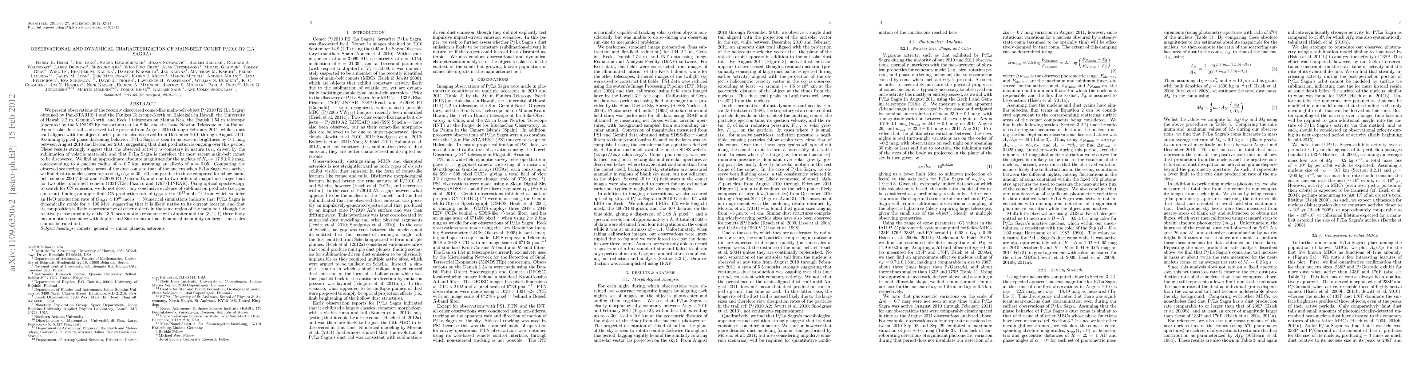 This paper characterizes the main-belt comet P/2010 R2 (La Sagra), observing an antisolar dust tail and a dust trail, suggesting ongoing dust production and cometary activity. The nucleus's absolute magnitude and radius are estimated, and dynamical stability is inferred for over 100 Myr, though long-term instability remains possible due to resonances with Jupiter and Saturn.