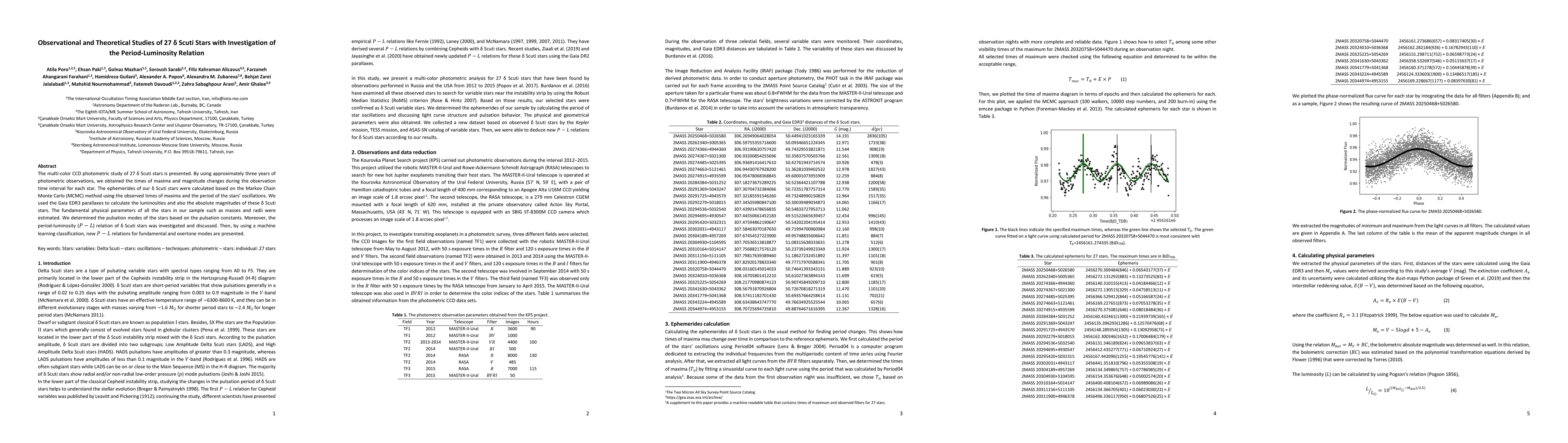 This paper presents a multi-color CCD photometric study of 27 Delta Scuti stars, deriving their ephemerides using the MCMC method and analyzing their luminosity and physical parameters. It investigates the period-luminosity relation and introduces new classifications for fundamental and overtone modes using machine learning.