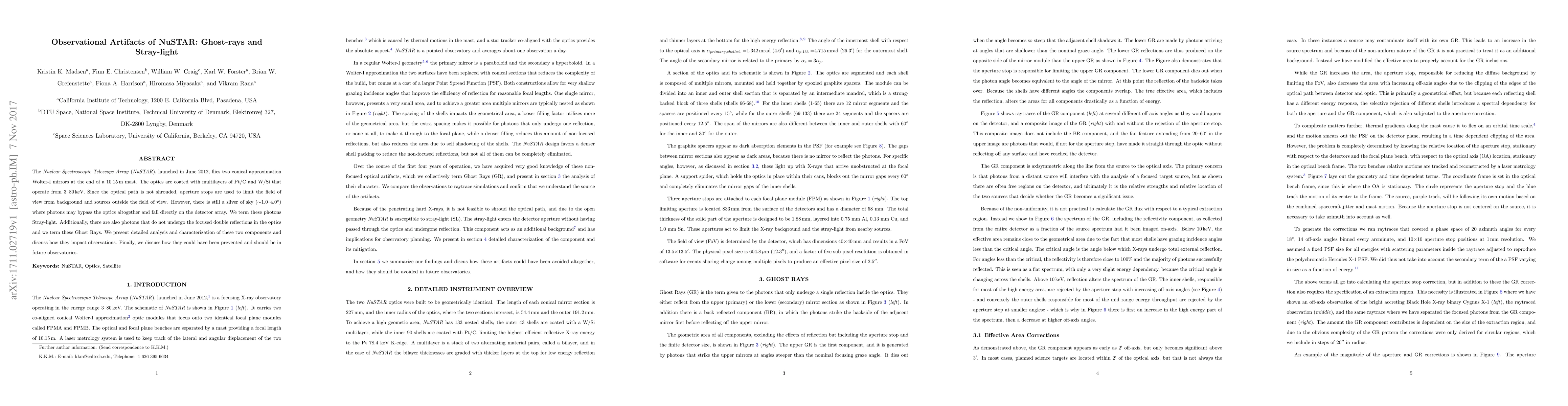 This paper analyzes NuSTAR's observational artifacts: Stray-light and Ghost Rays. Stray-light photons bypass optics, while Ghost Rays skip focused reflections. Both impact observations, with discussion on prevention for future observatories.