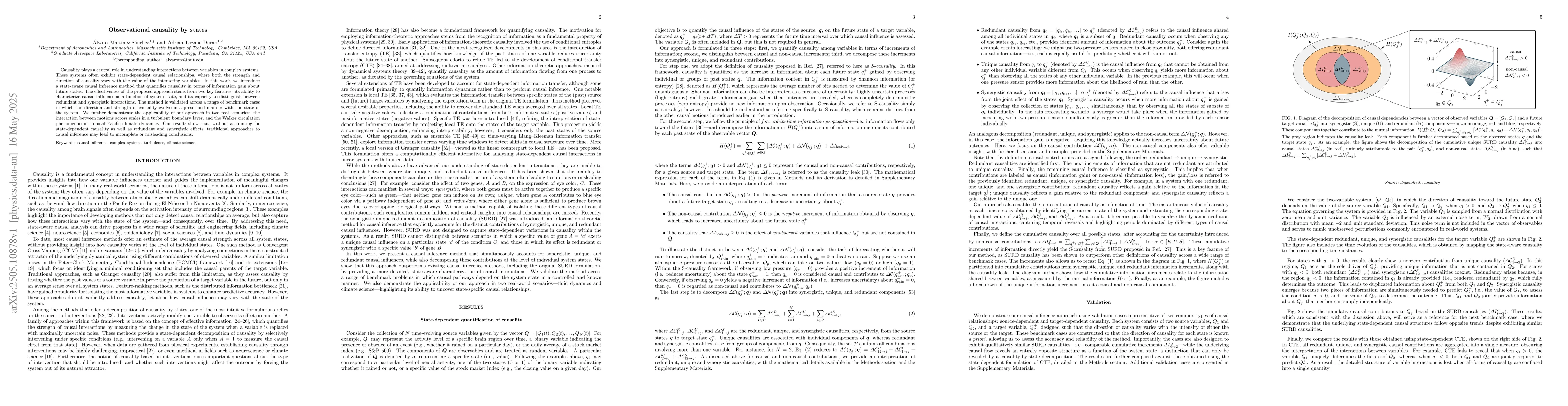 The research introduces a state-aware causal inference method that quantifies causality based on information gain about future states, characterizing causal influence as a function of system state and distinguishing between redundant and synergistic interactions.