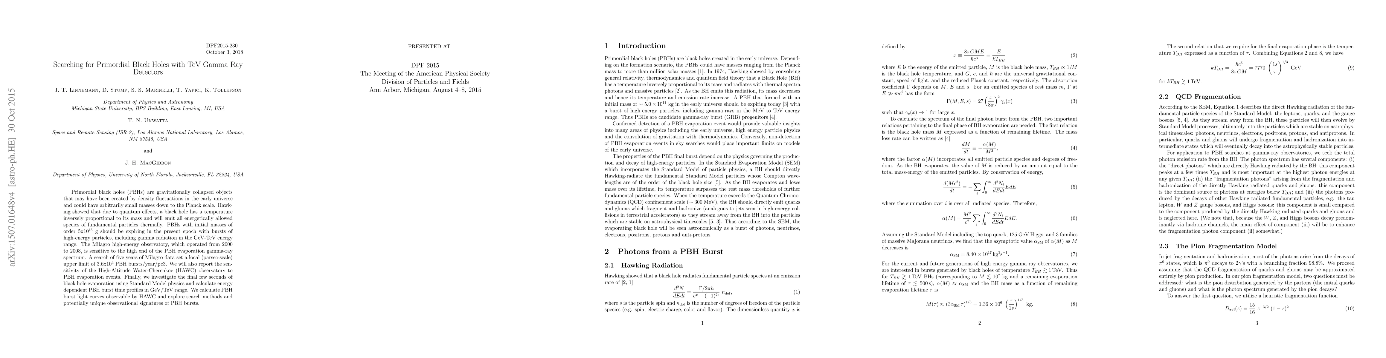 Many early universe theories predict the creation of Primordial Black Holes (PBHs). The PBHs could have masses ranging from the Planck mass to 10^5 solar masses or higher depending on the formation scenario. Hawking showed that any Black Hole (BH) has a temperature which is inversely proportional to its mass. Hence a sufficiently small BH will thermodynamically radiate particles at an ever-increasing rate, continually decreasing its mass and raising its temperature. The final moments of this evaporation phase should be explosive. In this work, we investigate the final few seconds of the BH burst using the Standard Model of particle physics and calculate the energy dependent burst time profiles in the GeV/TeV range. We use the HAWC (High Altitude Water Cherenkov) observatory as a case study and calculate PBH burst light curves which would be observed by HAWC.